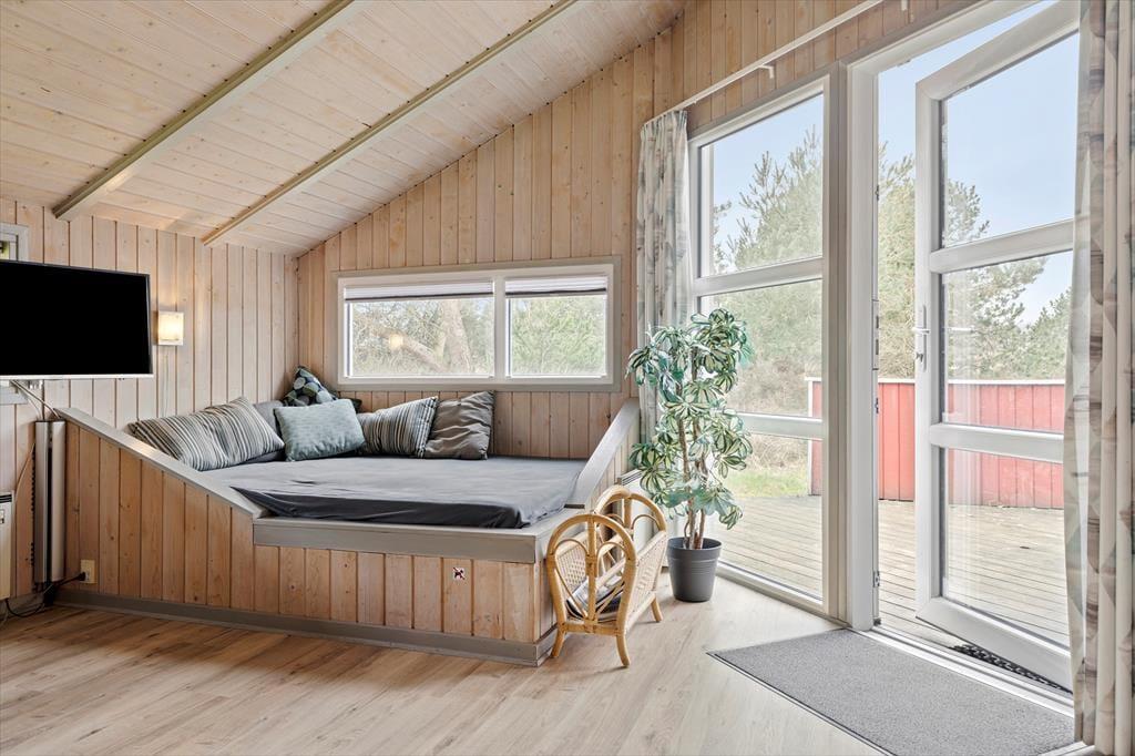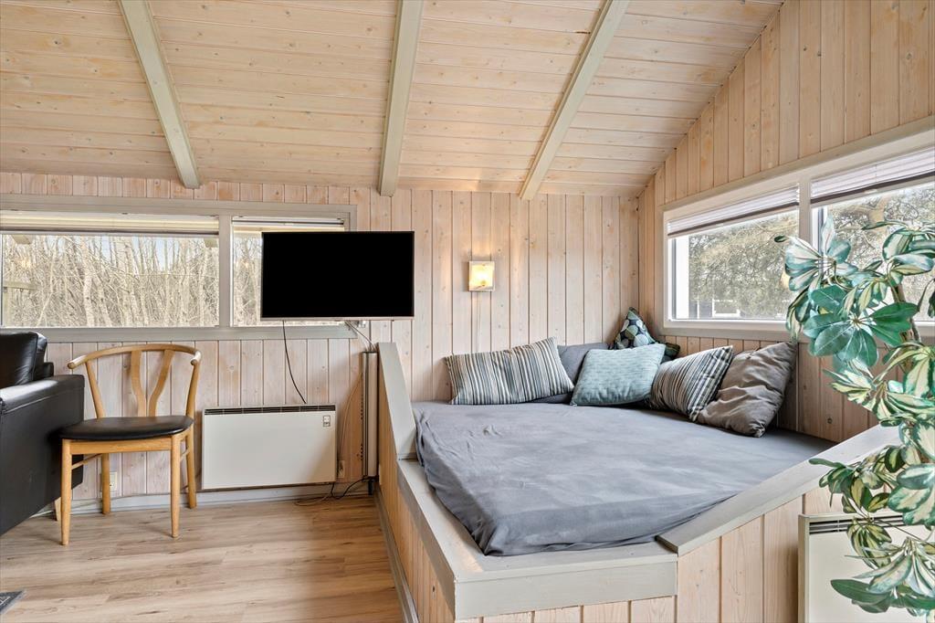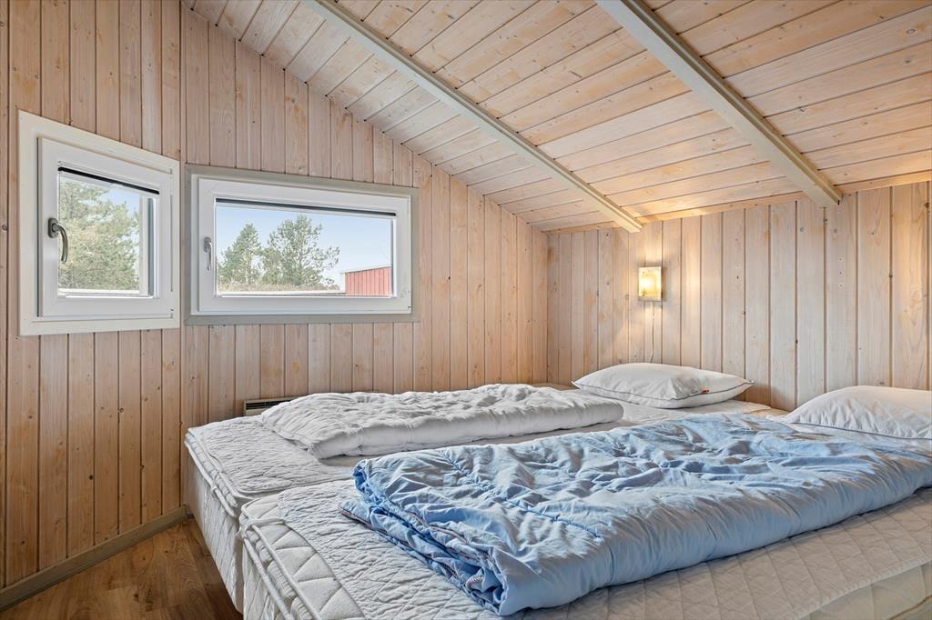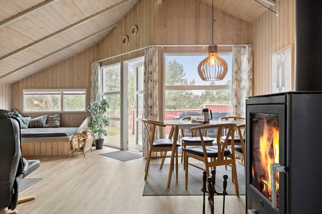 Det fremgår nærmest af husets flotte og velholdte træfacade og flotte listetag, at der er noget godt i vente inden døre –og her bliver I ikke skuffede, for der er blandt andet brændeovn i stuen, komfortable senge i de tre soverum og både spabad og sauna på badeværelset. Som supplement til badeværelset hører et gæstetoilet også med til planløsningen, mens madlavningen kommer til at foregå i den veludstyrede køkkenafdeling, der ligger i åben forbindelse med stuen. Sidstnævnte er ikke bare indrettet med spisebord og en behagelig sofaafdeling, men også med en indbygget hyggekrog med madras, der er perfekt til en middagslur efter frokosten.