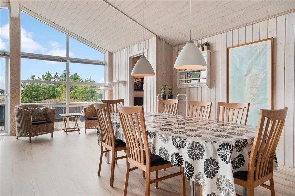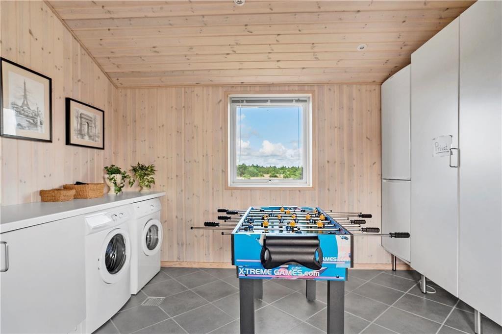 Inden døre strømmer sollyset ind, og den omkringliggende natur kommer frit til skue gennem vinduerne – ikke mindst i den store stue, hvor det vestvendte gavlparti går fra gulv til loft. I stuen, der ligger i åben forbindelse med et lækkert køkken, påvirkes den skønne atmosfære desuden positivt af brændeovnen, den flotte loftshøjde og den smagfulde møblering, og også på de tre soveværelser og på badeværelset er indretningen enkel og velvalgt. Når I ikke tilbringer tiden med en god bog eller en god film på fladskærmen, kan I sætte jer på det ene værelse for at spille PlayStation sammen. En anden familievenlig detalje er, at huset byder på et aktivitetsrum med kombineret bordfodbold-, billard- og bordtennisbord, så de fælles hyggestunder kan oplagt tilbringes med en dyst om at blive feriens stormester.