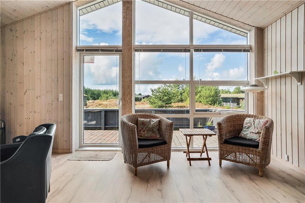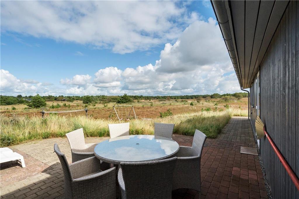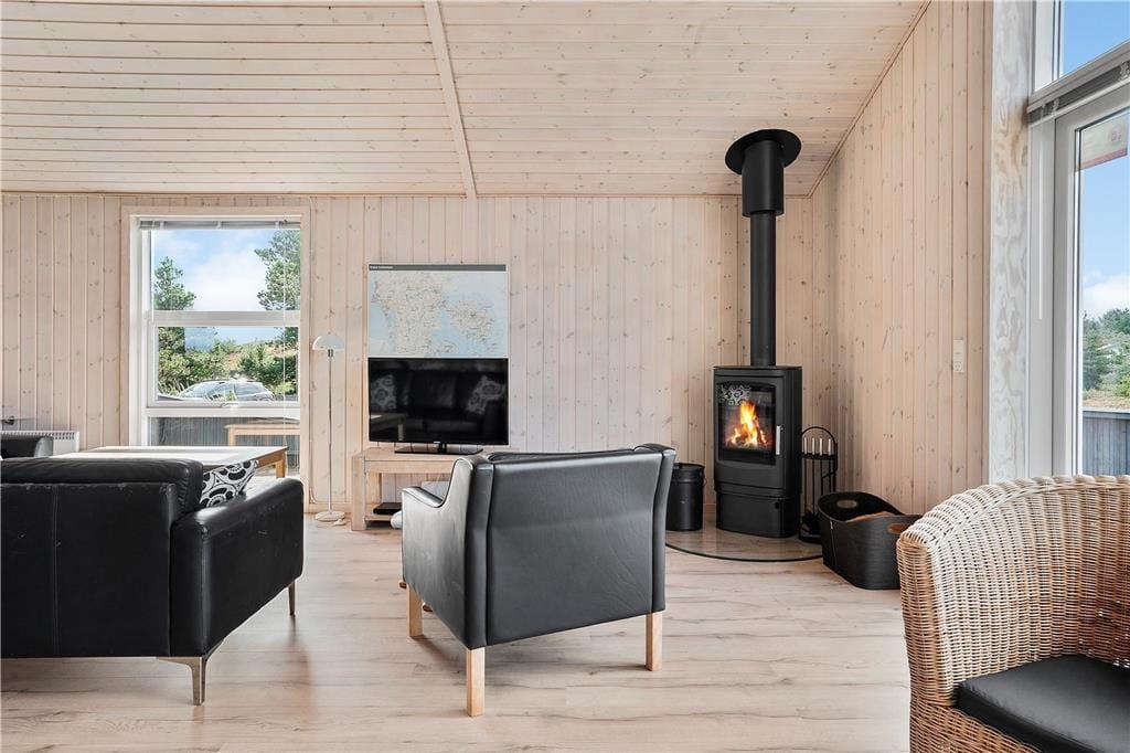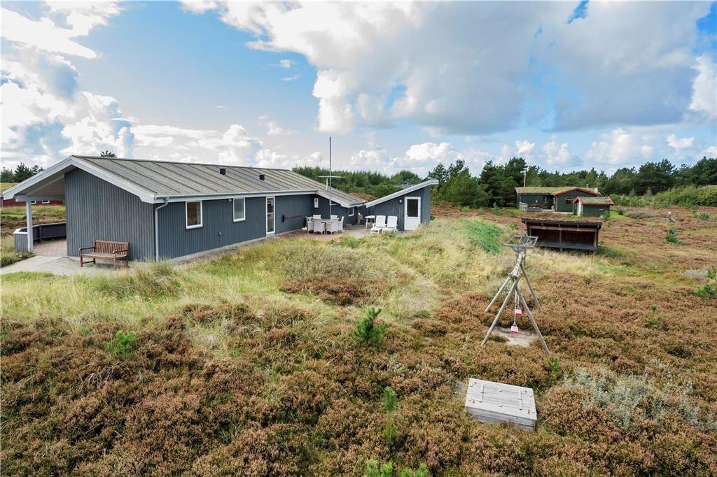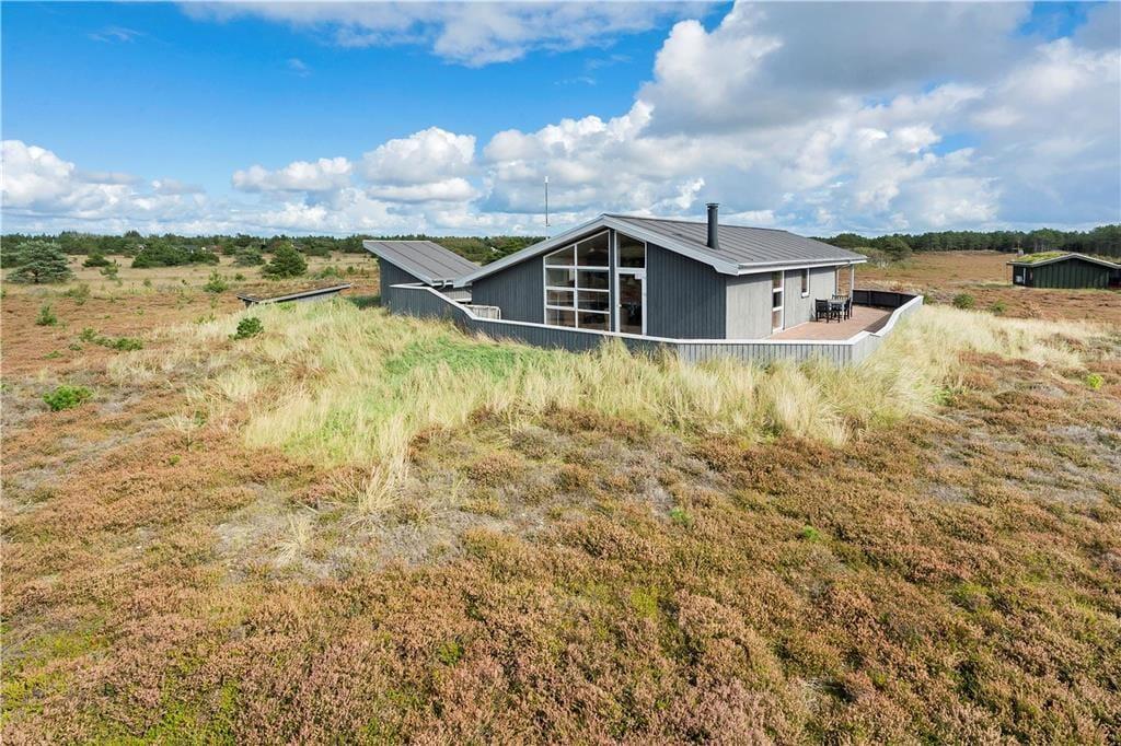 I får en herlig ramme om ferien, når I tilbringer den i dette flotte og moderne indrettede træsommerhus, der ligger på en lukket vej med udsigt over Bolilmarks åbne hede landskab.