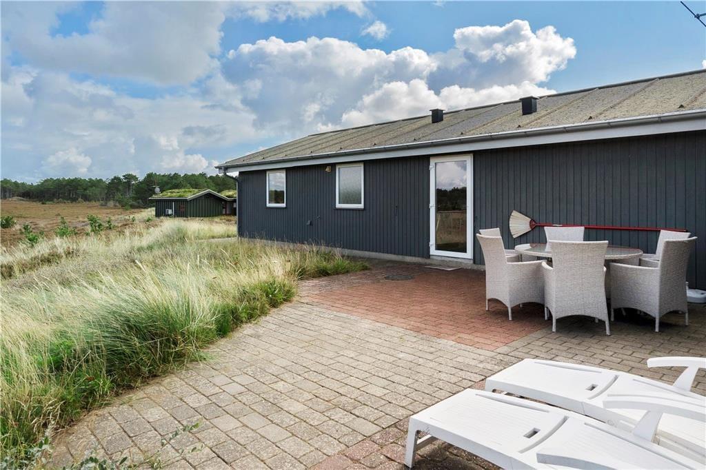 Sommerhusets udendørsfaciliteter er mindst lige så fantastiske: Det skyldes ikke kun naturgrundens generøse størrelse og den fantastiske udsigt, men også det dejlige terrassemiljø, der smyger sig hele vejen rundt om huset. En del af terrassen er desuden overdækket, og der er både shelter, gyngestativ og sandkasse, som I kan hygge jer med.