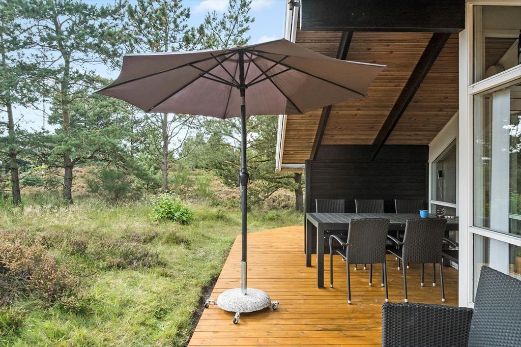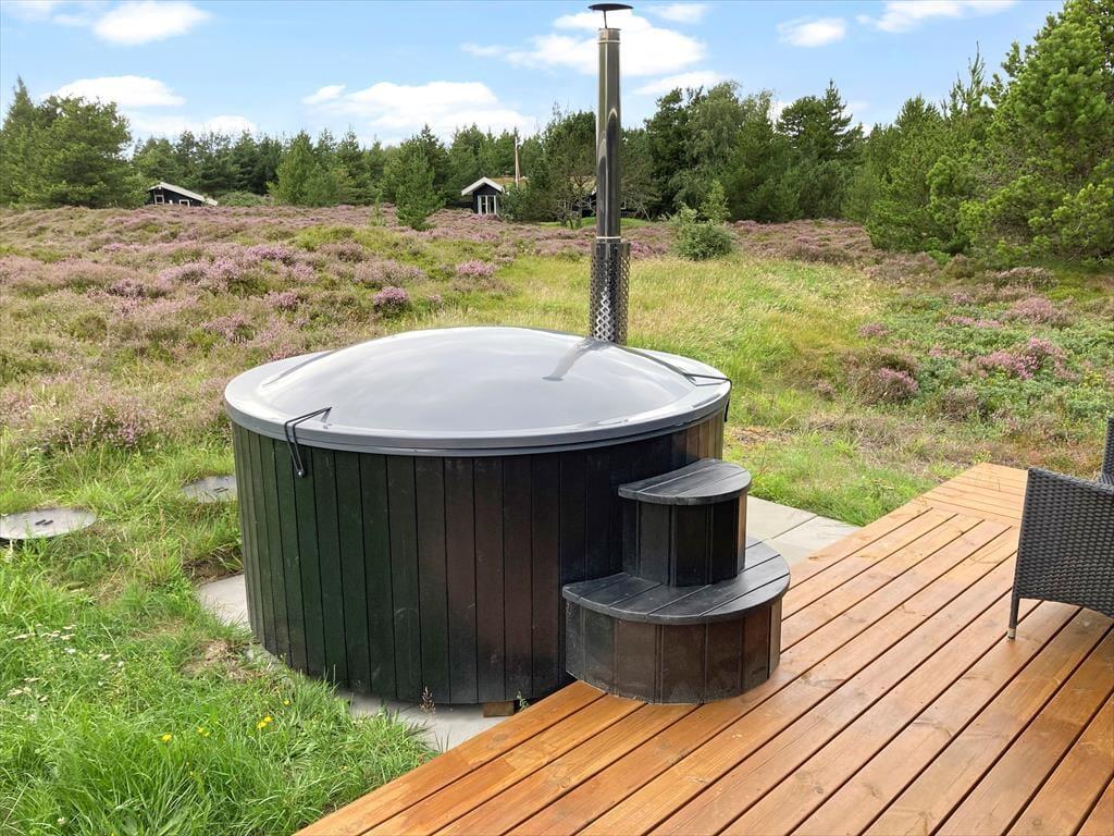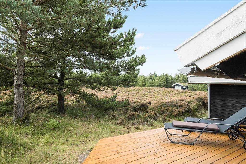 Øst, syd og vest for huset breder en skøn træterrasse sig, så det er nemt at finde en dejlig opholdsplads uanset tidspunktet på dagen. En del af terrassen er overdækket, hvis I søger ly eller læ, og her er et skønt vildmarksbad og naturligvis havemøbler, liggestole og grill til rådighed. Dejlig naturgrund på hele 2.845 m2.