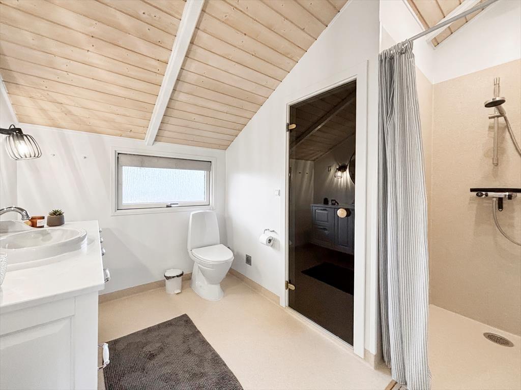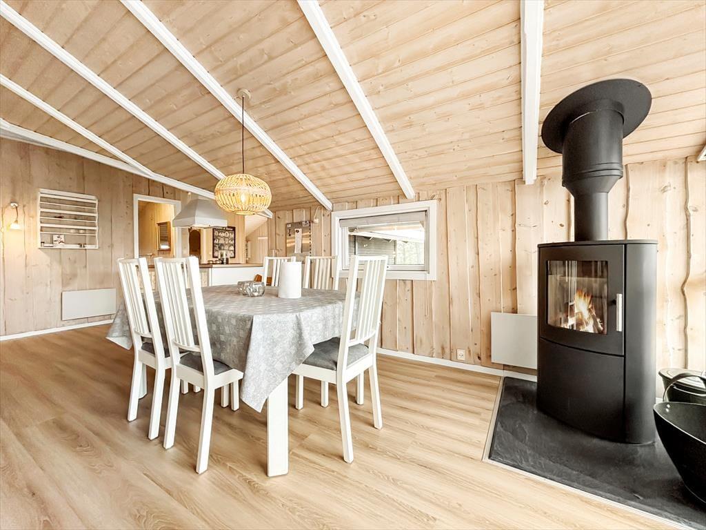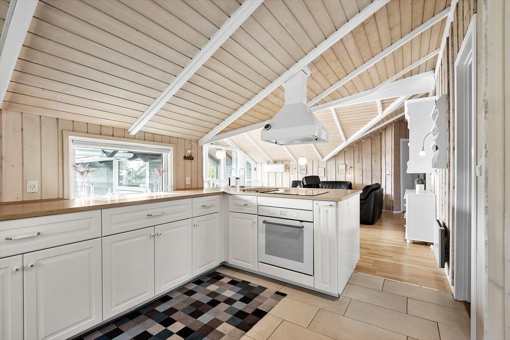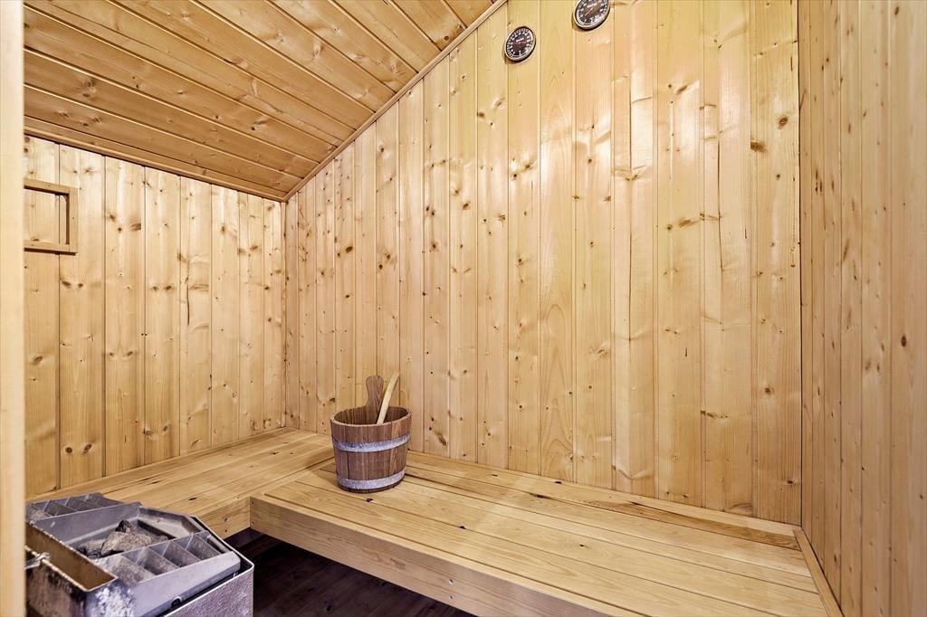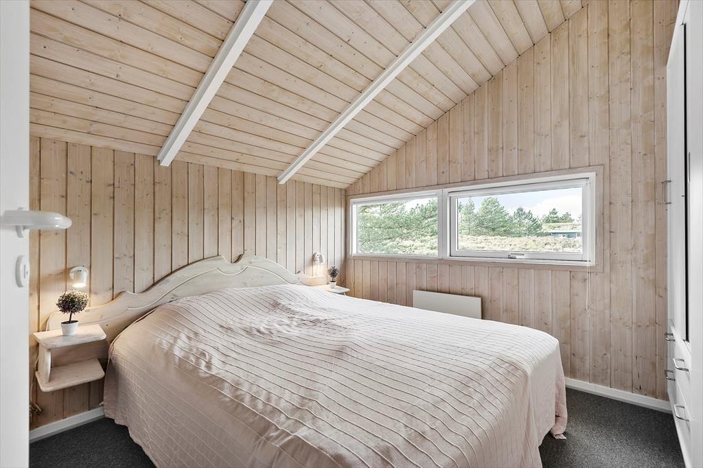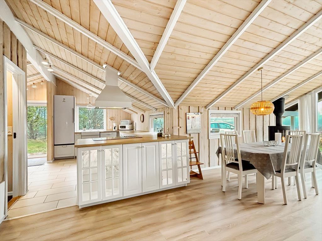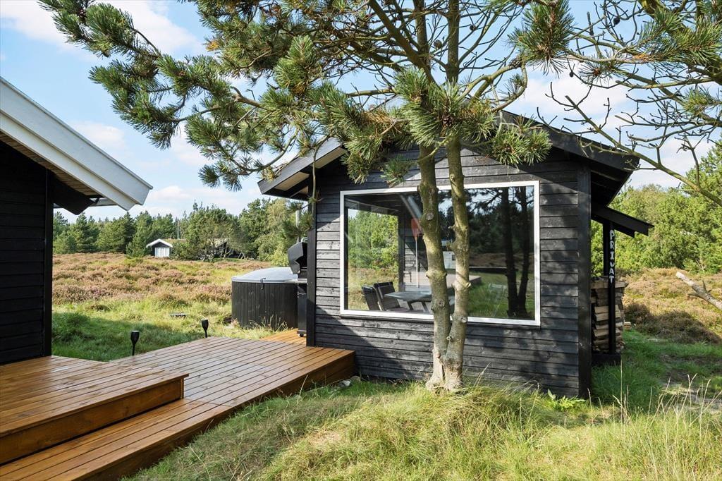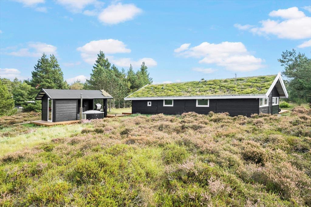 Med sin mørke træfacade og sit levende tag falder sommerhuset nærmest i ét med de naturskønne omgivelser. Atmosfæren er også helt i top inden døre i opholdsrummet, for her er der loft til kip og lyse trælister på væggene, og en brændeovn hører med til husets charmetræk. Planløsningen er åben, så stue og køkken er forenet, og gennem de store vinduespartier får I glæde af sollyset og den flotte udsigt over hede landskabet. Ligesom opholdsrummet er sommerhusets tre soveværelser lyse og indbydende, og det samme er gæstetoilettet og badeværelset, hvoraf sidstnævnte endda er udstyret med en sauna.