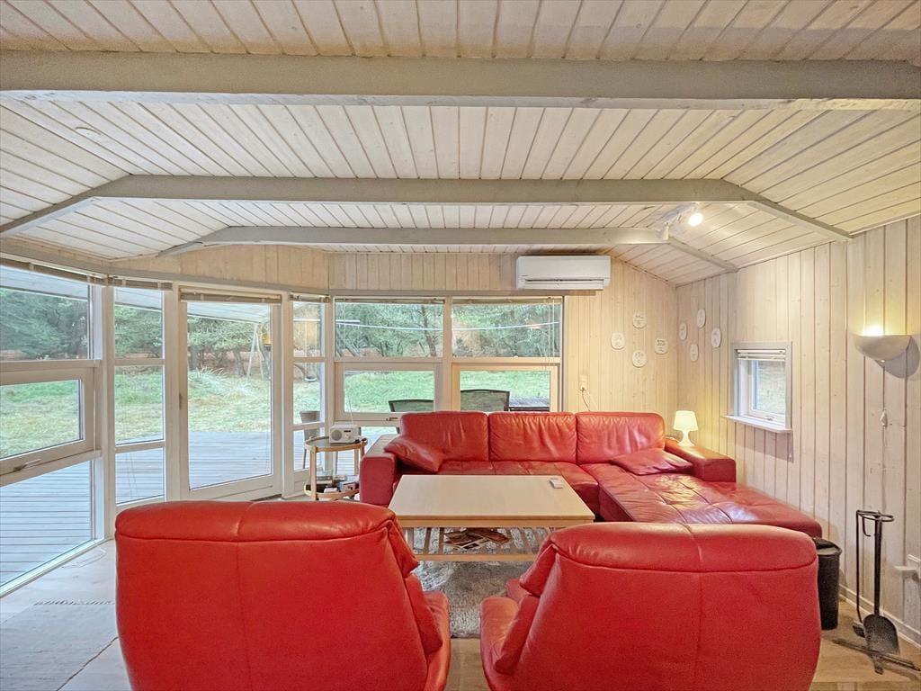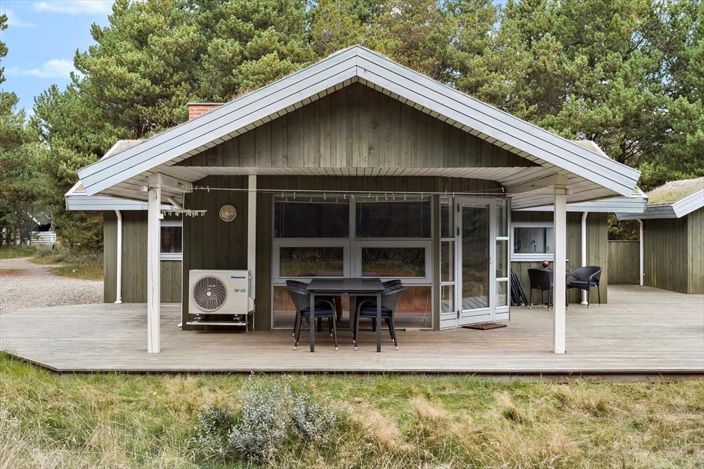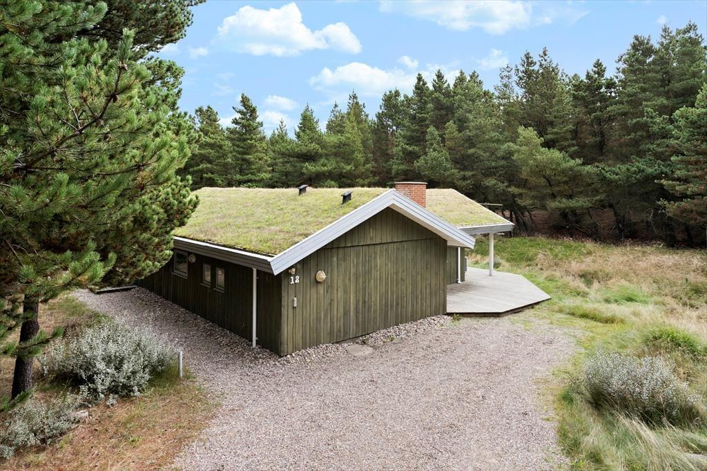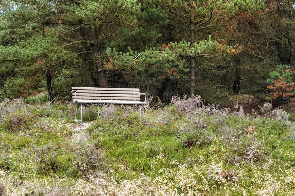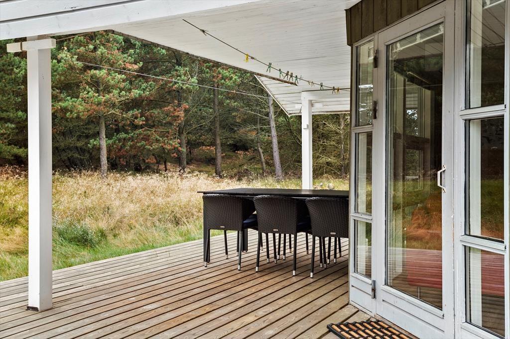 På den 3200 m2 store grund er I omgivet af fyrretræer og hedelyng, så I har fornemmelsen af at bo midt ude i den frie natur. Udsigten kan blandt andet nydes fra en bænk og fra gyngestativet, og I kan selvfølgelig også slå jer ned på terrassen, der breder sig rundt om sommerhuset. Terrassen er delvist overdækket, og der er både grill, havemøbler og liggestole til rådighed, som er med til at forsøde udelivet.