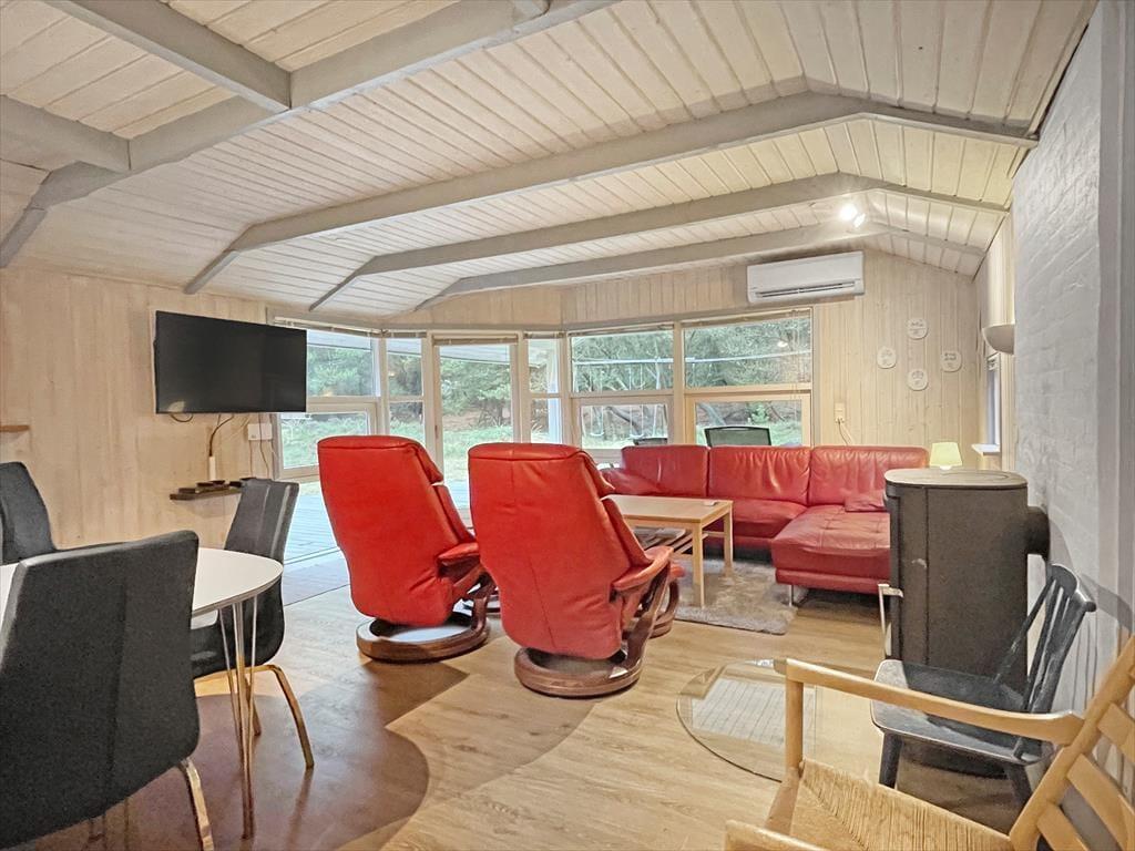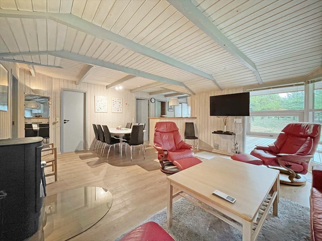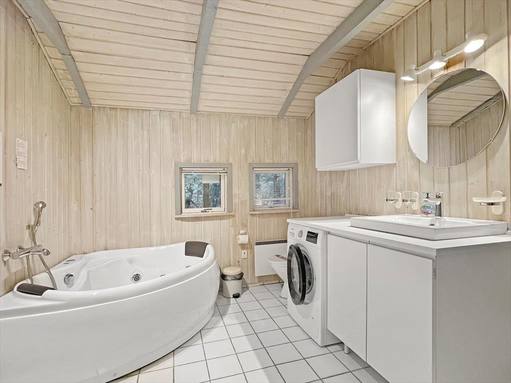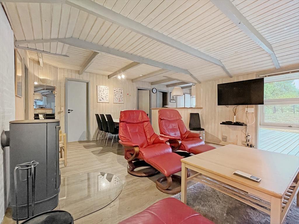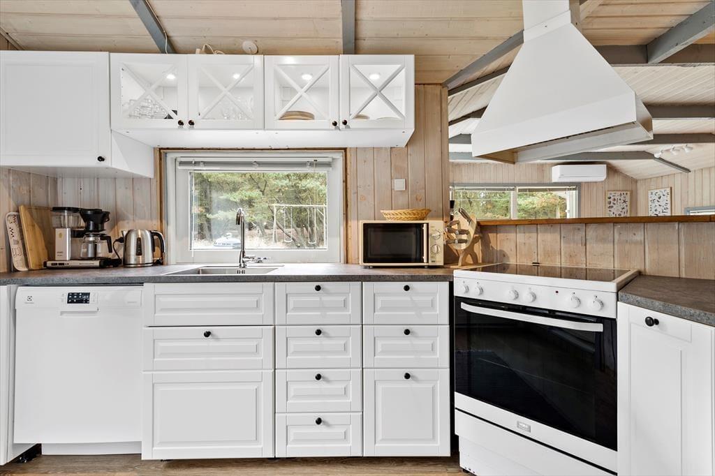 Set udefra kommer man straks i godt feriehumør, for sommerhuset præsenterer sig på køn og klassisk vis med træfacade og grønt tag, der passer perfekt ind i de smukke naturomgivelser. Inden døre kan I brede jer på 81 velindrettede kvadratmeter, som blandt andet byder på tre gode soveværelser med i alt syv sengepladser. Et badeværelse er her naturligvis også, og her kan I koble helt af, når I forkæler jer selv med et spabad og en tur i saunaen. Efter dagens udflugter kan I også samles i stuen, som er et dejligt opholdsrum med brændeovn, varmepumpe, komfortabelt møblement og åben forbindelse til et veludstyret køkken.