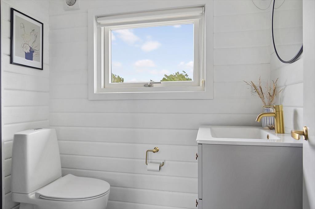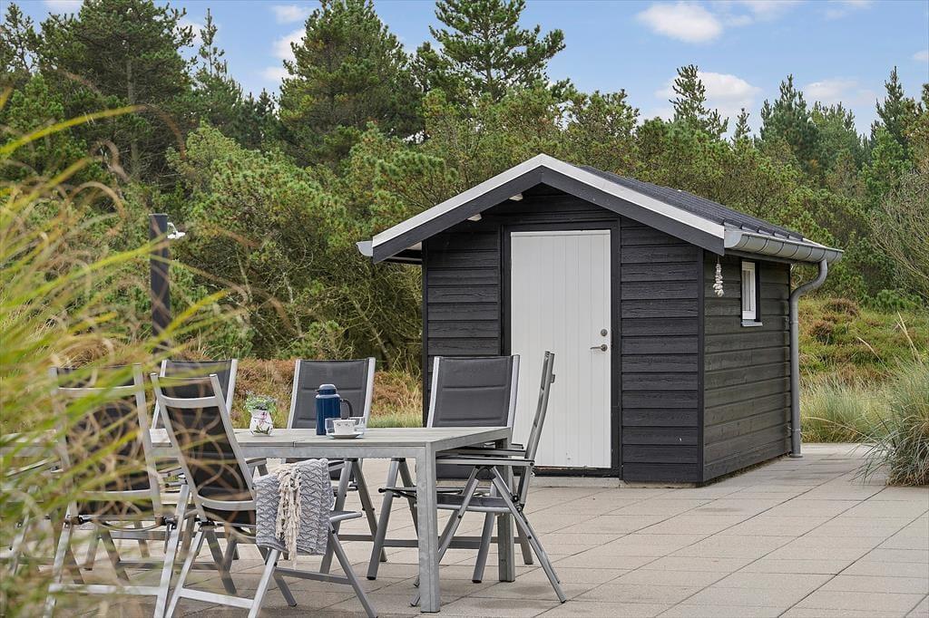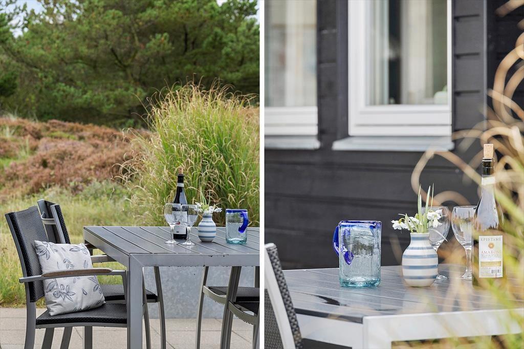 En af sommerhusets helt store kvaliteter er den skønne terrasse, som breder sig rundt om huset og byder på flere hyggelige kroge. Her kan du altid finde en plads i solen eller læ, alt efter vind og vejr. Det er oplagt at starte dagen med en kop kaffe på en af de små siddepladser og senere samle familien til aftensmad under åben himmel. Børnene kan lege frit på grunden, mens de voksne slapper af og nyder udsigten til Bolilmarks grønne og autentiske landskab. Terrassen giver dig med andre ord både privatliv og fællesskab – alt efter hvad humøret byder på.
