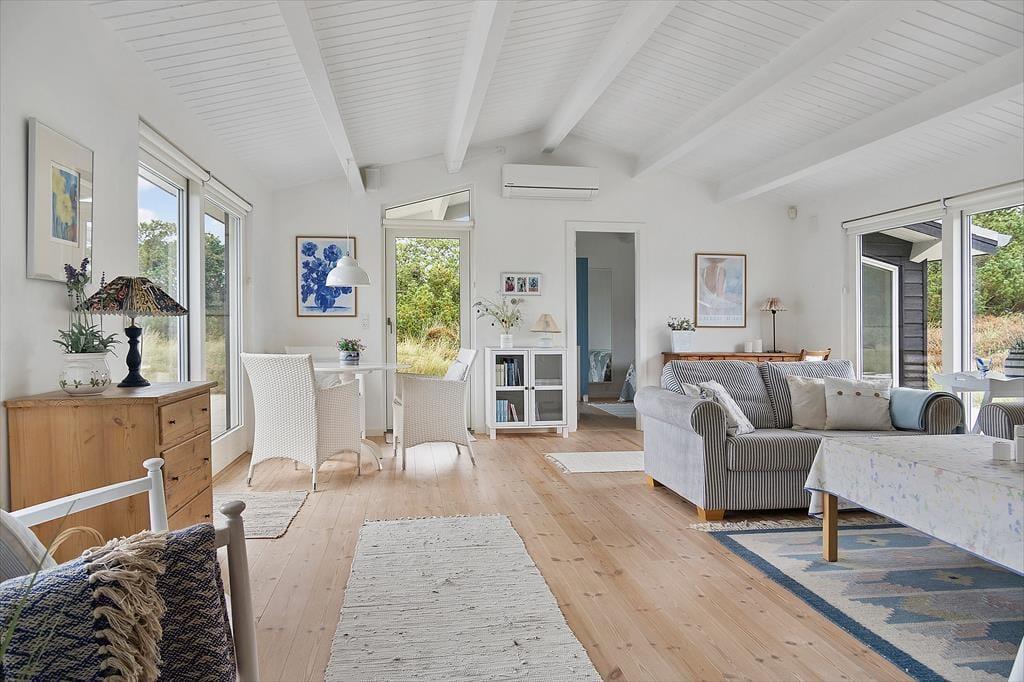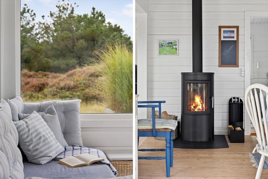 Inden døre møder du en dejlig, lys indretning, hvor ejerne har sat deres personlige præg og skabt en atmosfære, der indbyder til afslapning. Opholdsarealet er rummeligt og kombinerer stue og køkken i en åben planløsning, hvilket gør det let at være sammen om madlavning, spil eller hyggelige samtaler. Alligevel er der så god plads, at du nemt kan finde et stille hjørne til at fordybe dig i en bog eller tage en lille middagslur, selv hvis I er flere afsted sammen. Det store køkken er velegnet til fælles madlavning, og i stuen kan I samle jer til aftener med brætspil eller bare nyde varmen fra brændeovnen, når mørket falder på.