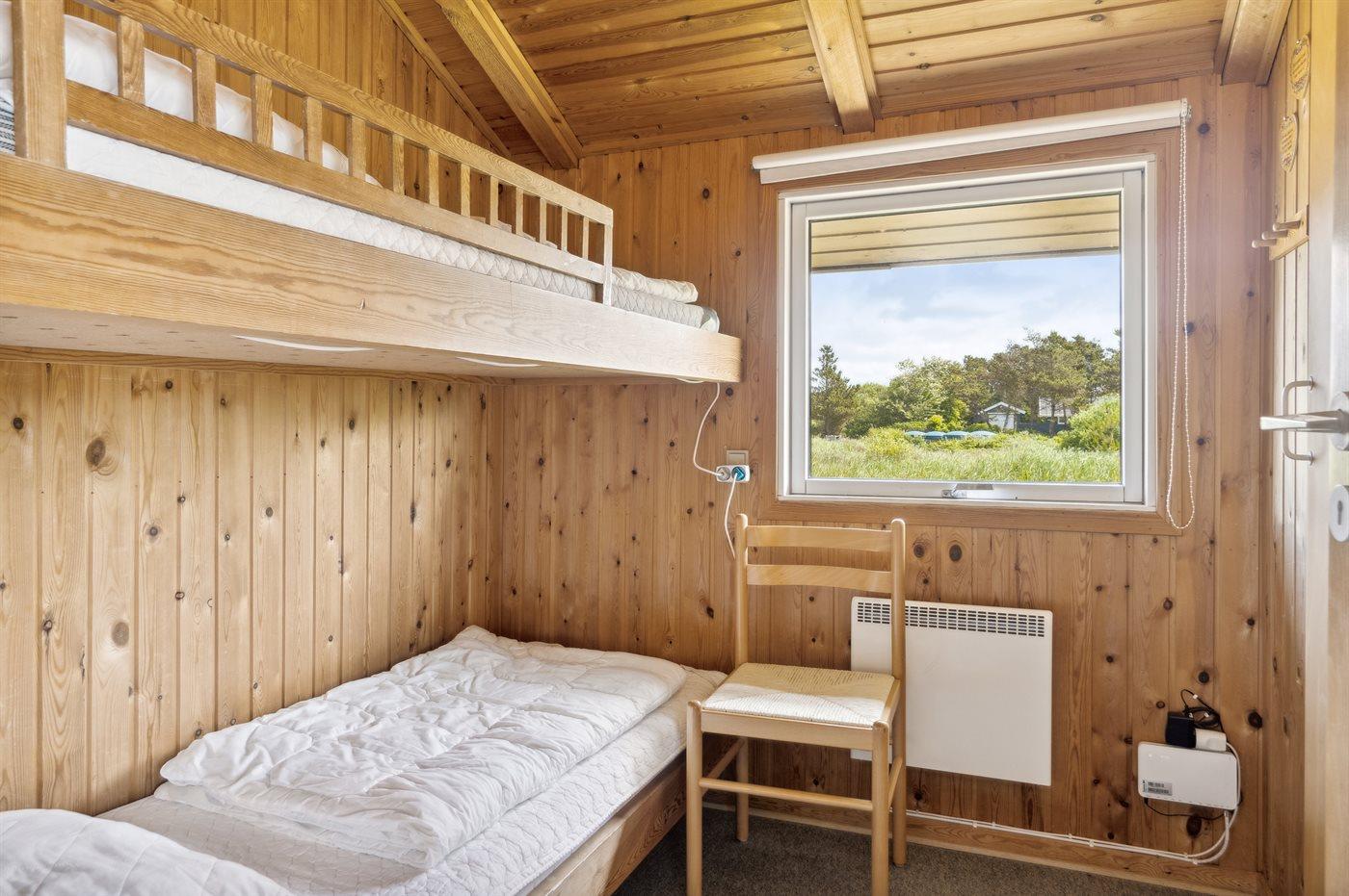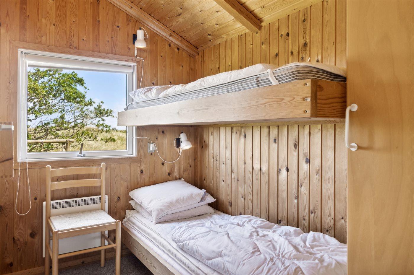 Der er i alt 3 soveværelser. Sovepladserne fordeler sig på: 2 sovepladser i dobbeltseng. 1 soveplads i enkeltseng. 2 sovepladser i køjeseng.