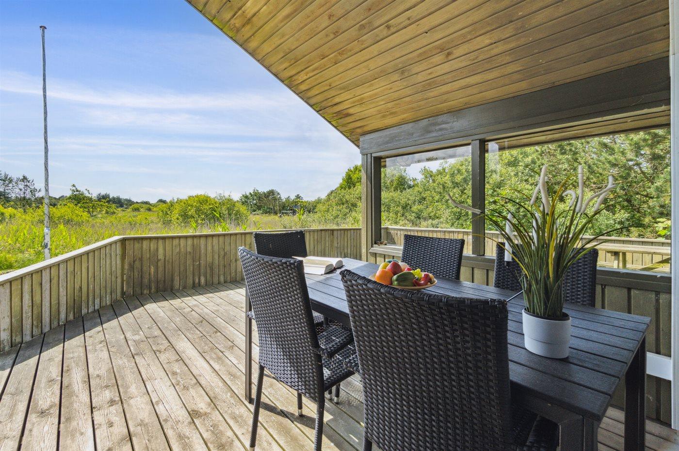 Ferieboligen er beliggende på en 12000 m² stor naturgrund. Der er 1700 m til havet. Der er 2700 m til Vadehavet. Nærmeste forretning er beliggende i en afstand af 1600 m. Der er en golfbane i en afstand af 7900 m. Til ferieboligen hører åbent terrasseareal. Desuden er der overdækket terrasse. Der er redskabsrum. Gynge. Sandkasse. Der er installeret stik til opladning af elbil. Type 2 stik. Parkering ved ferieboligen.