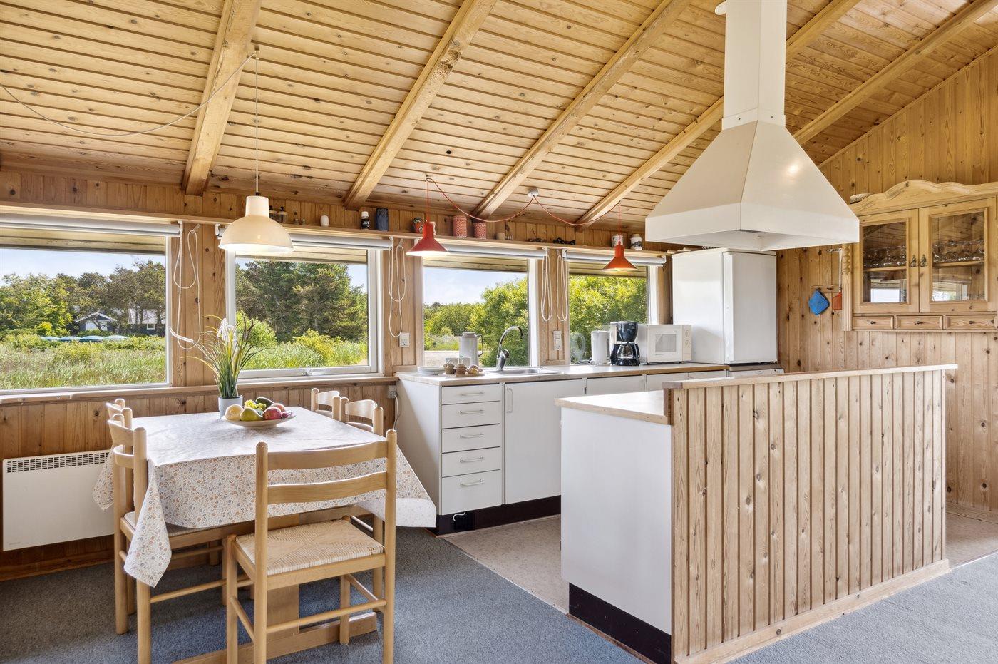 Køkkenet er udstyret med 1 køleskab. Der er 4 keramiske kogeplader, varmluftovn, mikrobølgeovn samt opvaskemaskine.