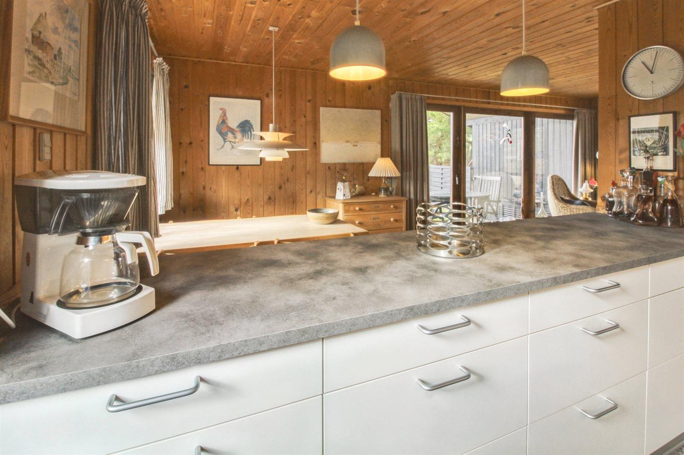Køkkenet er udstyret med 1 køleskab. Der er 4 induktionskogeplader, varmluftovn, mikrobølgeovn samt opvaskemaskine.
