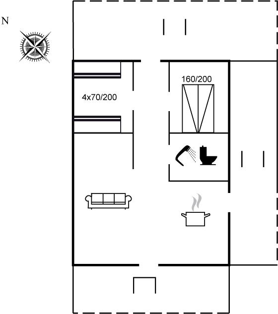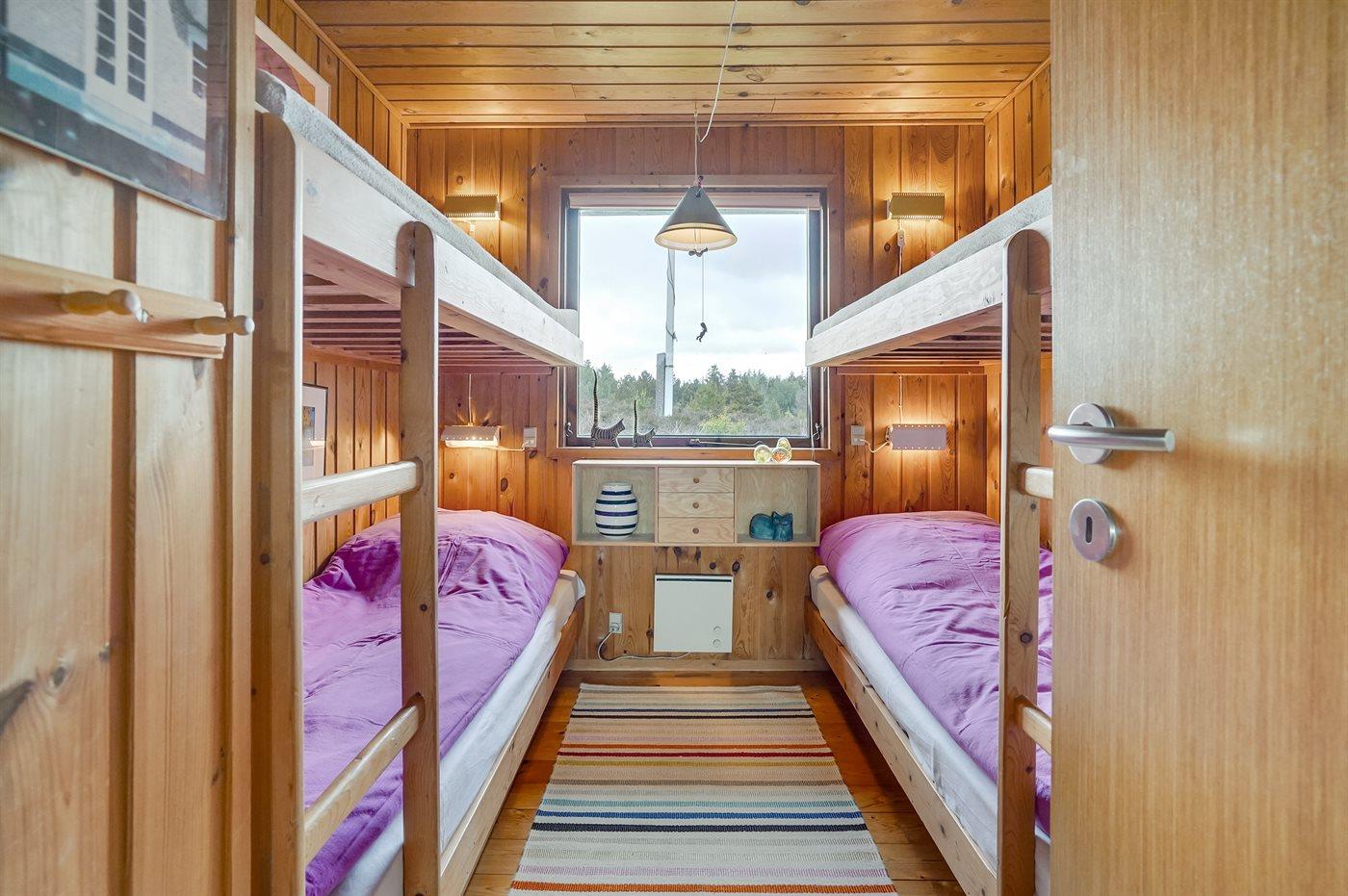 Der er i alt 2 soveværelser. Sovepladserne fordeler sig på: 2 sovepladser i dobbeltseng. 2 sovepladser i køjeseng.