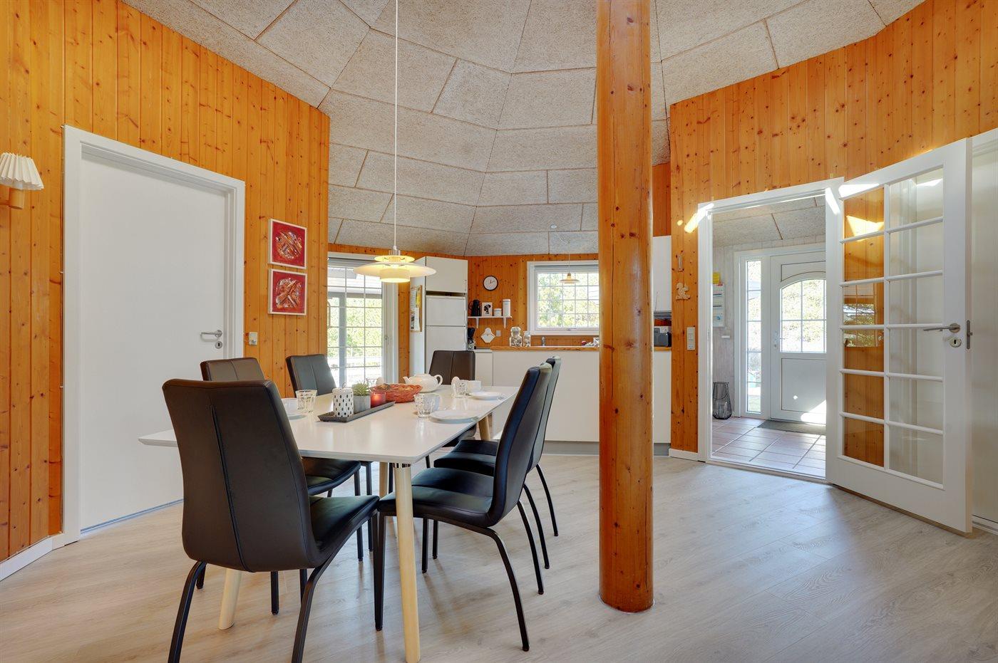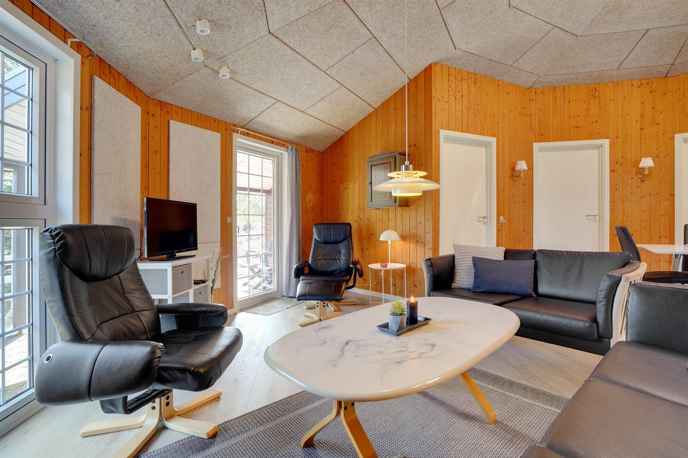 Sommerhuset egner sig til 6 personer. Ferieboligen er på 100 m² og er bygget i 1997. Det er tilladt at medbringe 1 husdyr. Ferieboligen er udstyret med energibesparende varmepumpe. Ferieboligen har vaskemaskine. Tørretumbler. Frysekapacitet på 40 liter. Der er desuden brændeovn.