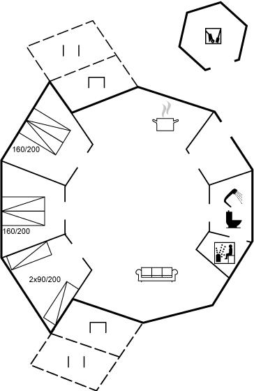 Unikt 10-kantet sommerhus med sauna og udsigt
