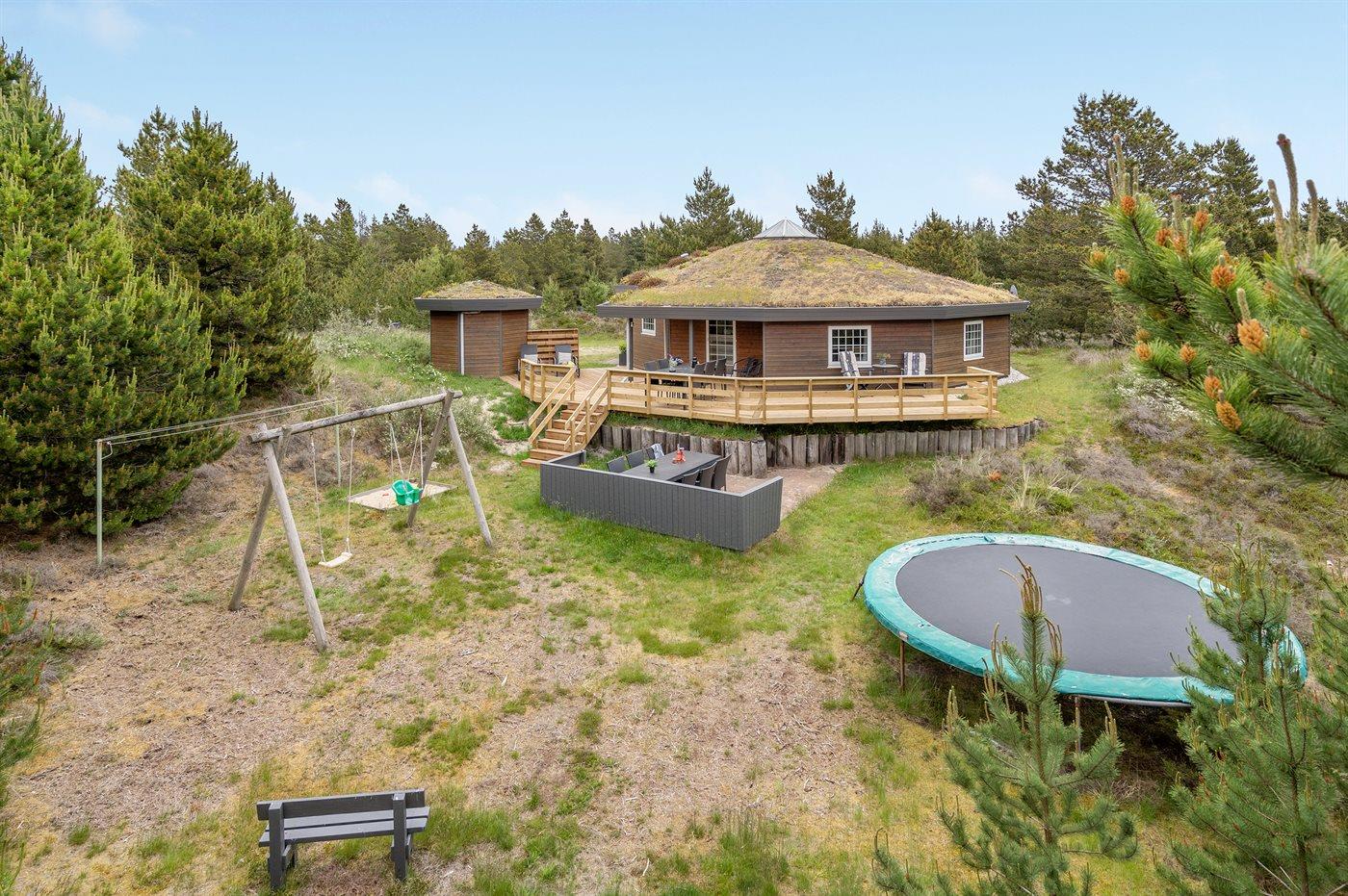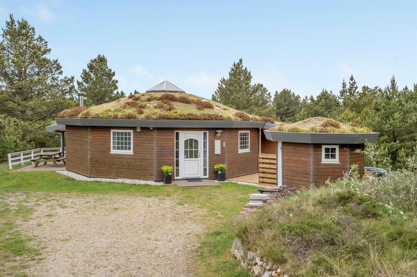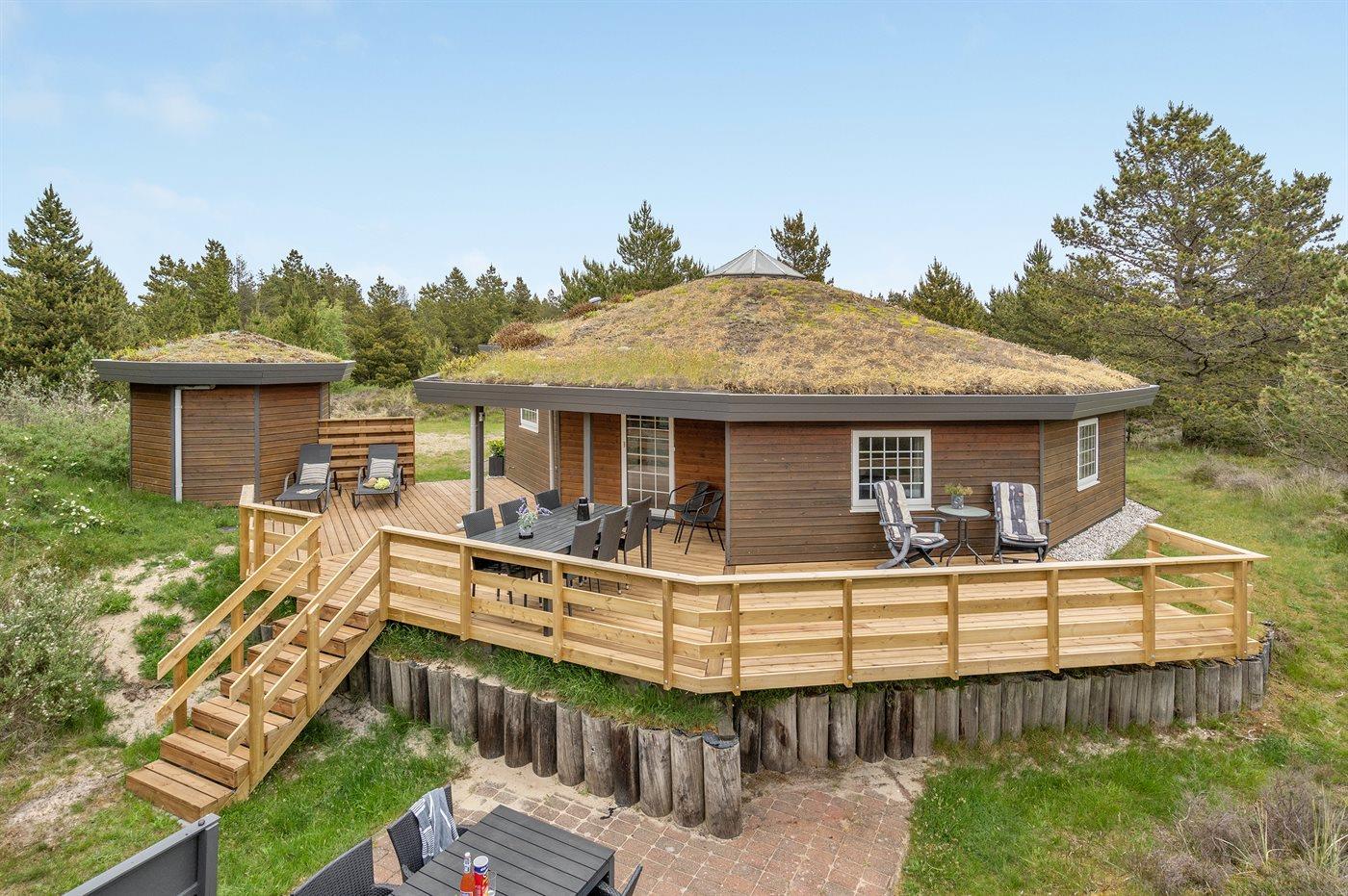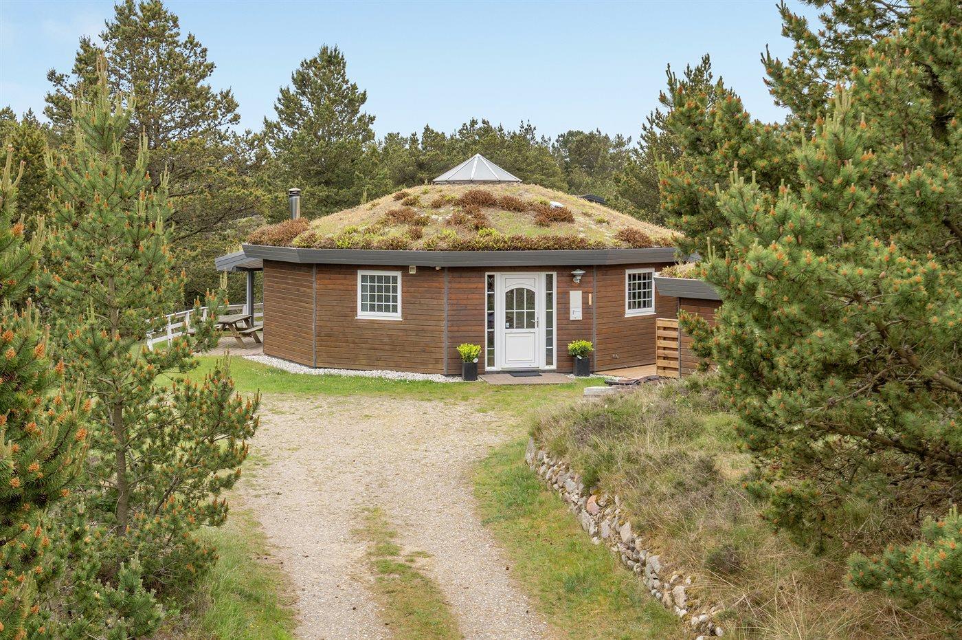 Charmerende 10-kantet sommerhus på stor grund med udsigt og sauna, tæt på Rømøs natur og strand.