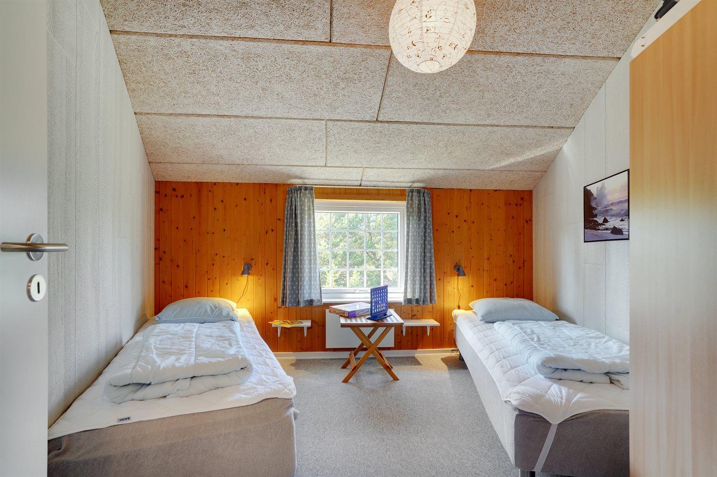 Der er i alt 3 soveværelser. Sovepladserne fordeler sig på: 4 sovepladser i dobbeltsenge. 2 sovepladser i enkeltsenge.
