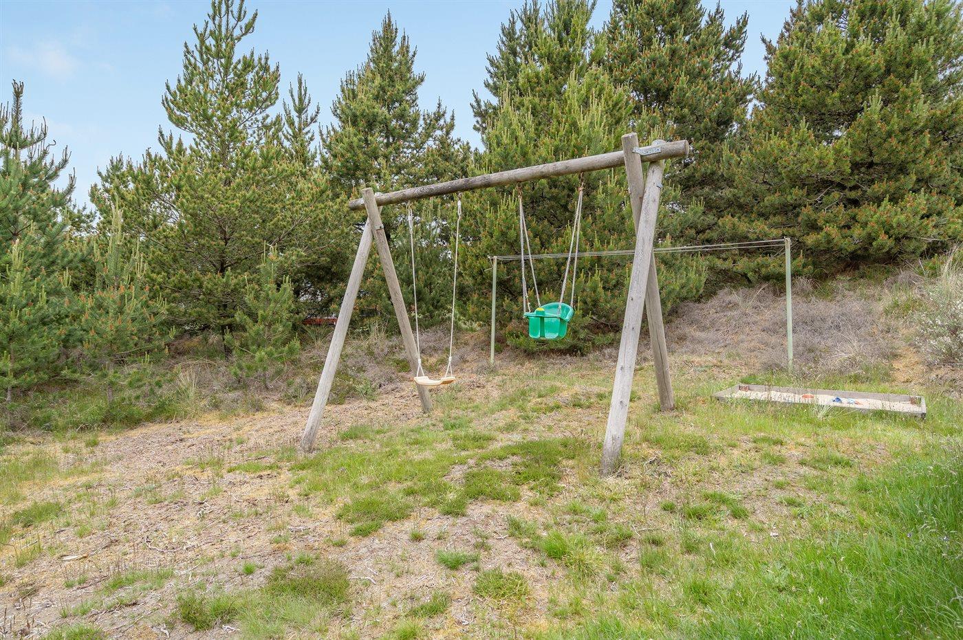 Ferieboligen er beliggende på en 2500 m² stor Der er 3100 m til havet. Nærmeste forretning er beliggende i en afstand af 3400 m. Til ferieboligen hører åbent terrasseareal. Desuden er der overdækket terrasse. Der er redskabsrum. Gynge. Sandkasse. Parkering ved ferieboligen.