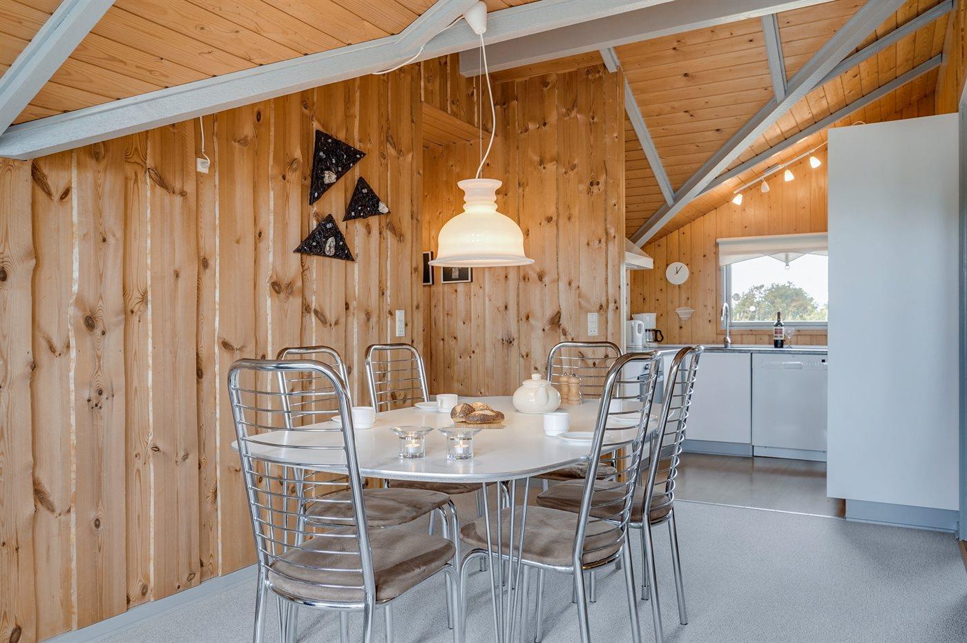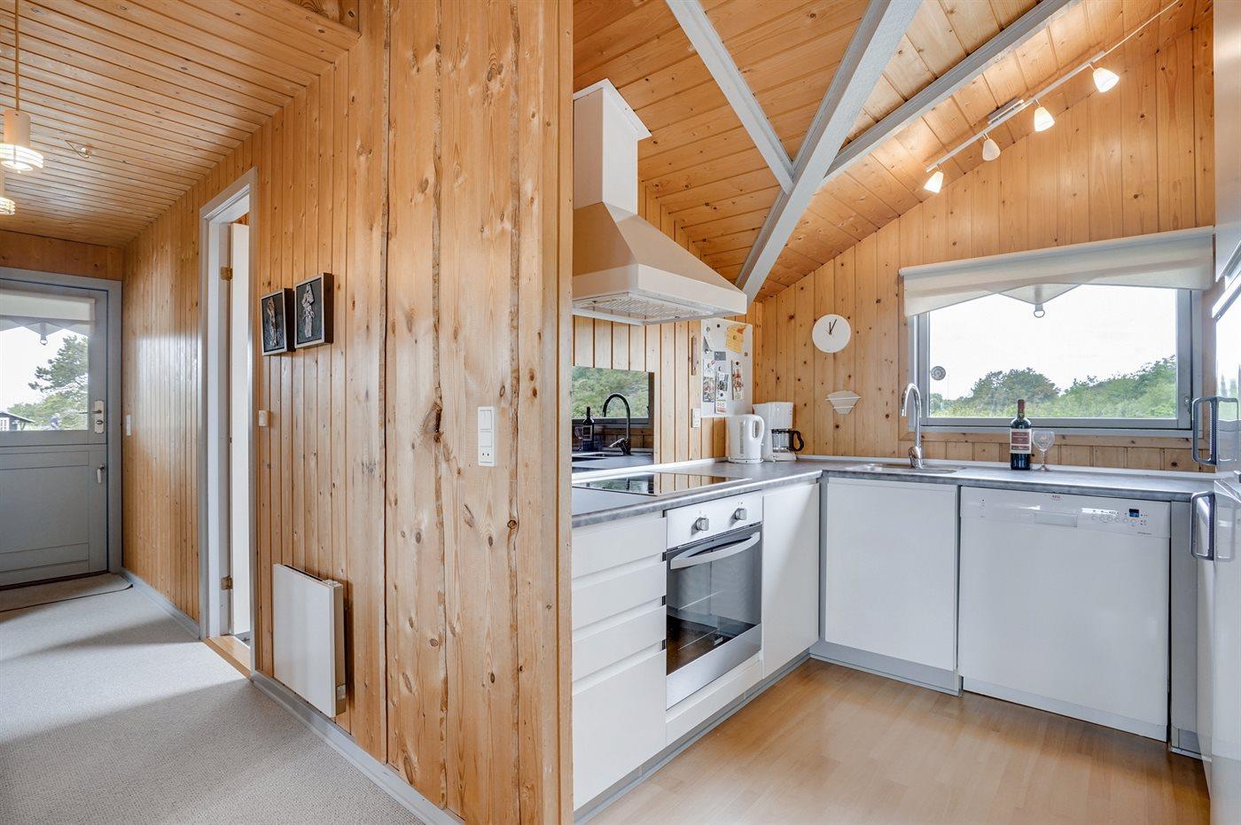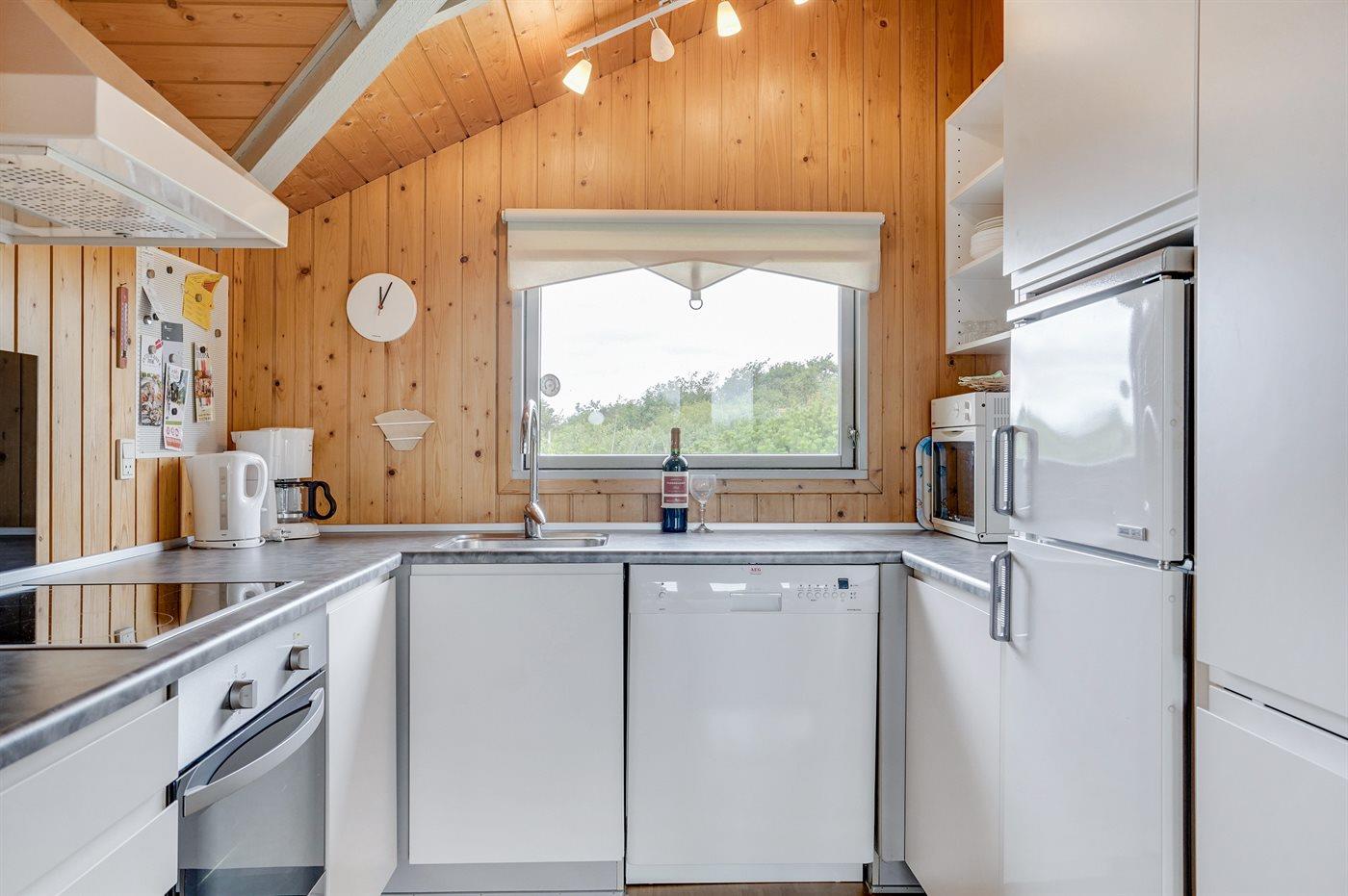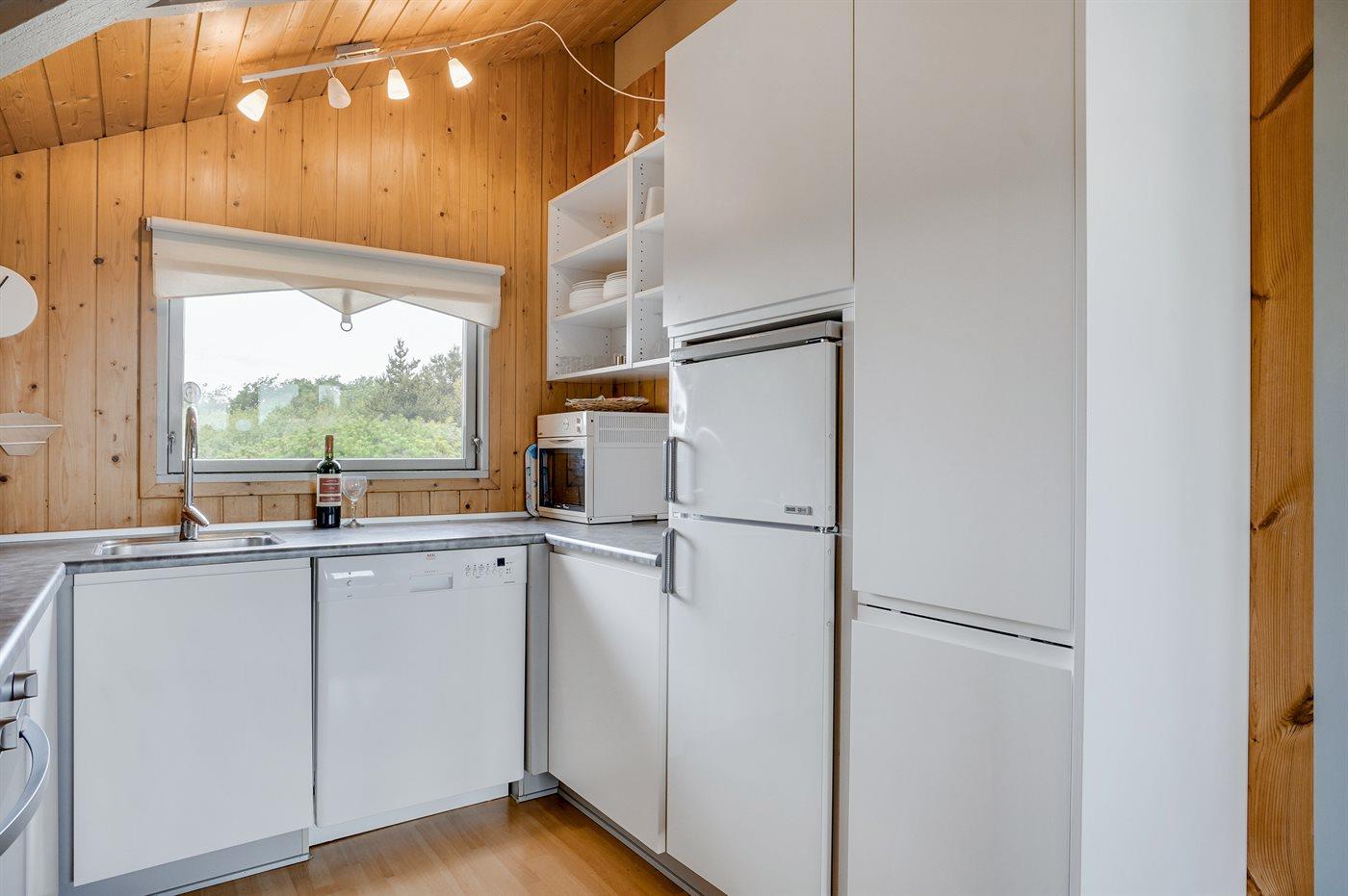 Køkkenet er udstyret med 1 køleskab. Der er 4 keramiske kogeplader, varmluftovn, mikrobølgeovn samt opvaskemaskine.
