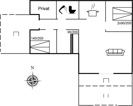 Der er i alt 3 soveværelser. Sovepladserne fordeler sig på: 4 sovepladser i dobbeltsenge. 2 sovepladser i køjeseng. Derudover er der 1 stk. barneseng.