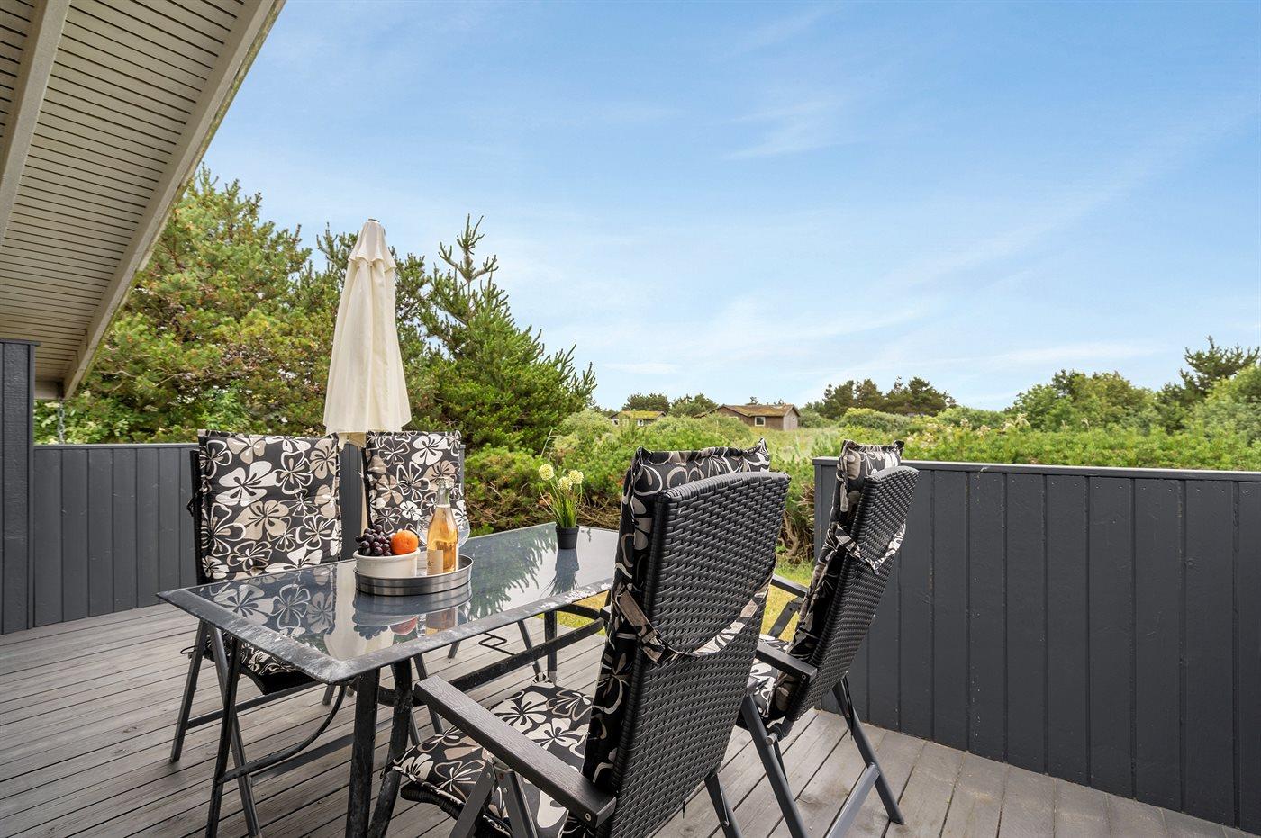 Ferieboligen er beliggende på en 2500 m² stor naturgrund. Der er 1800 m til havet. Nærmeste forretning er beliggende i en afstand af 3500 m. Der er en golfbane i en afstand af 13500 m. Til ferieboligen hører 18 m² terrasseareal. Desuden er der 10 m² overdækket terrasse. Der er redskabsrum. Grill til rådighed. Parkering ved ferieboligen.