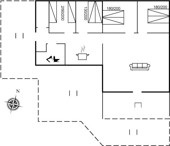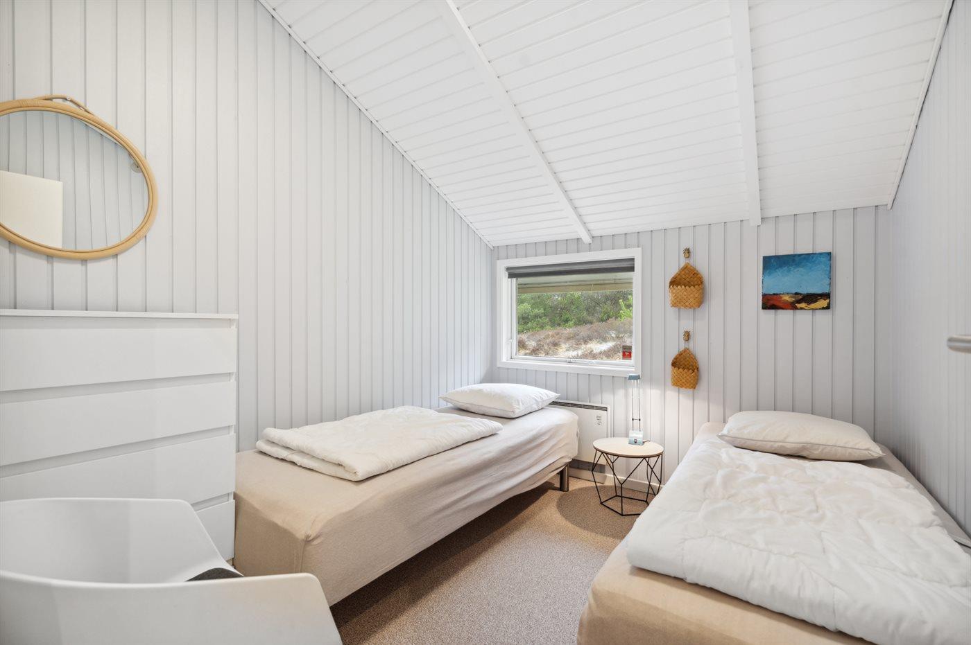 Der findes 4 soveværelser og sovepladserne fordeler sig på 6 sovepladser i dobbeltsenge og 2 sovepladser i enkeltsenge. Derudover er der 1 stk. barneseng.
