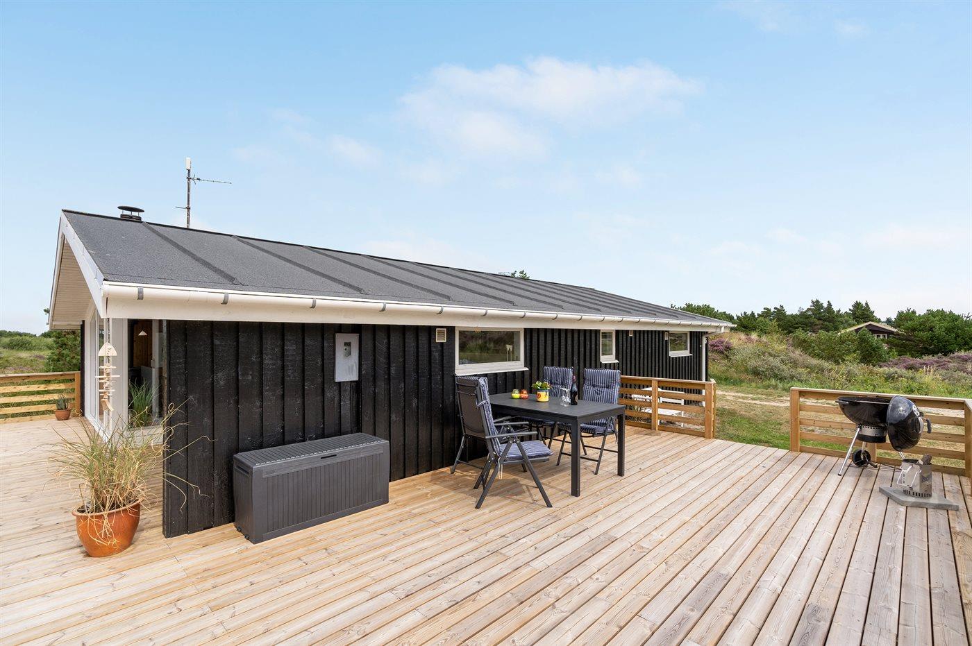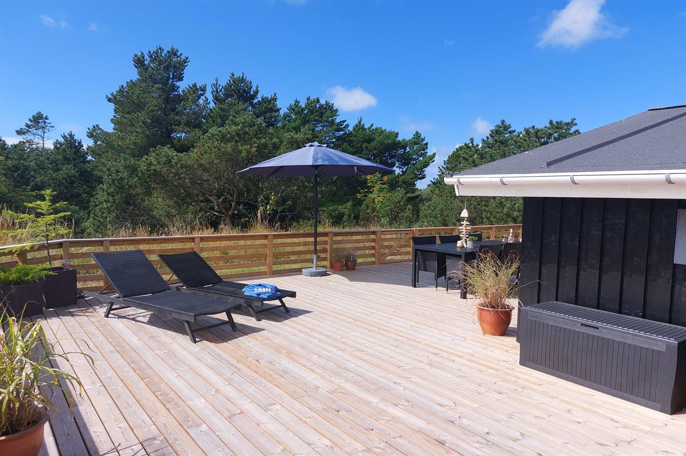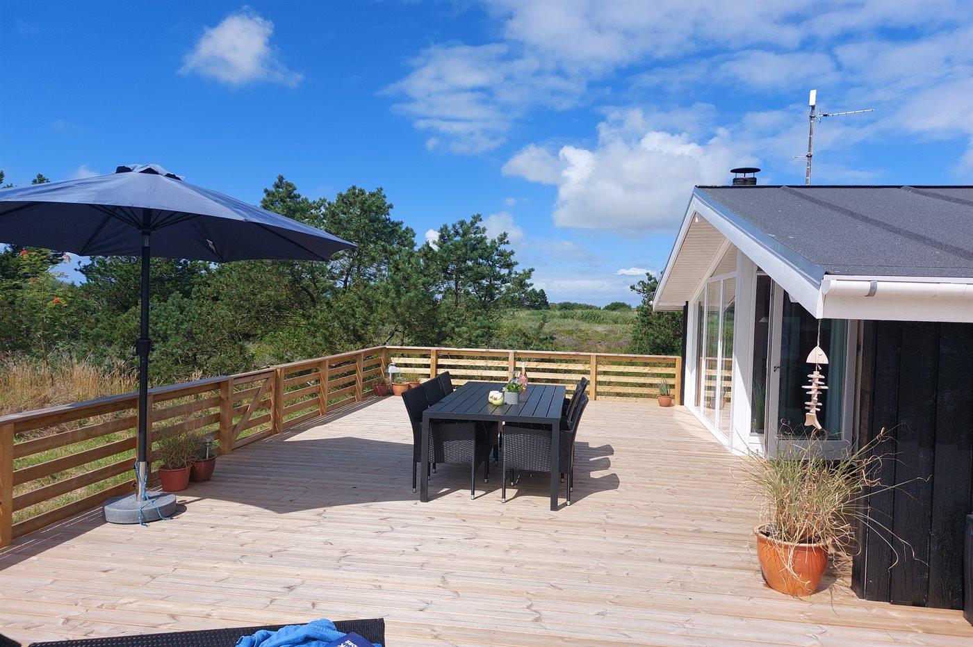På en særdeles skøn naturgrund, på en rolig vej i Bolilmark ligger dette dejlige sommerhus Til huset hører en stor såvel åben som overdækket, vestvendt terrasse med havemøbler. Terrassen er godt afskærmet og perfekt til både solbadning og mange dejlige grillaftener. Huset er desuden blevet ombygget og har fået tilføjet en flot glasfacade som giver et helt unikt og afstemt indeklima. Et hus som danner de perfekte rammer for en god ferie midt i naturen og tæt ved en af Europas absolut bedste badestrande, hvortil der er direkte adgang fra den nærliggende cykel- og vandresti.