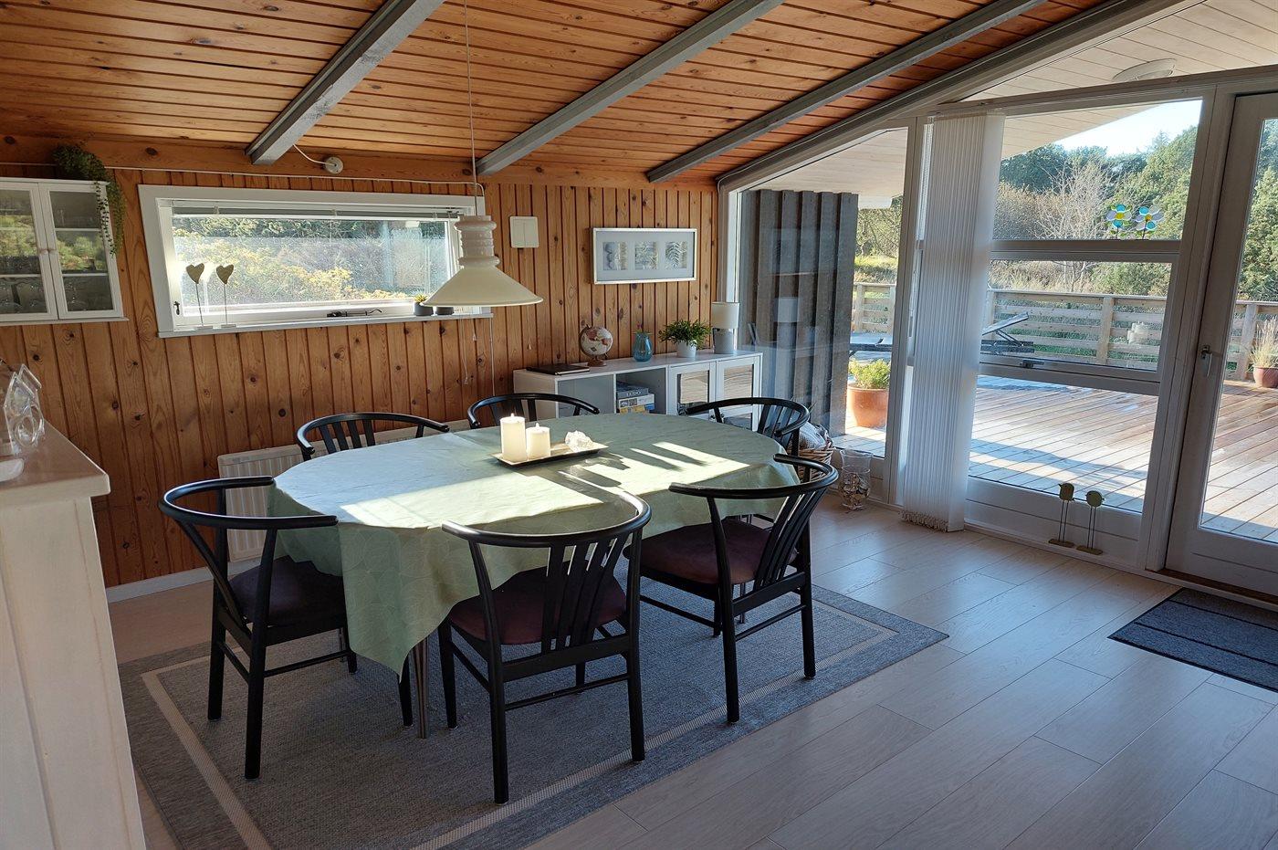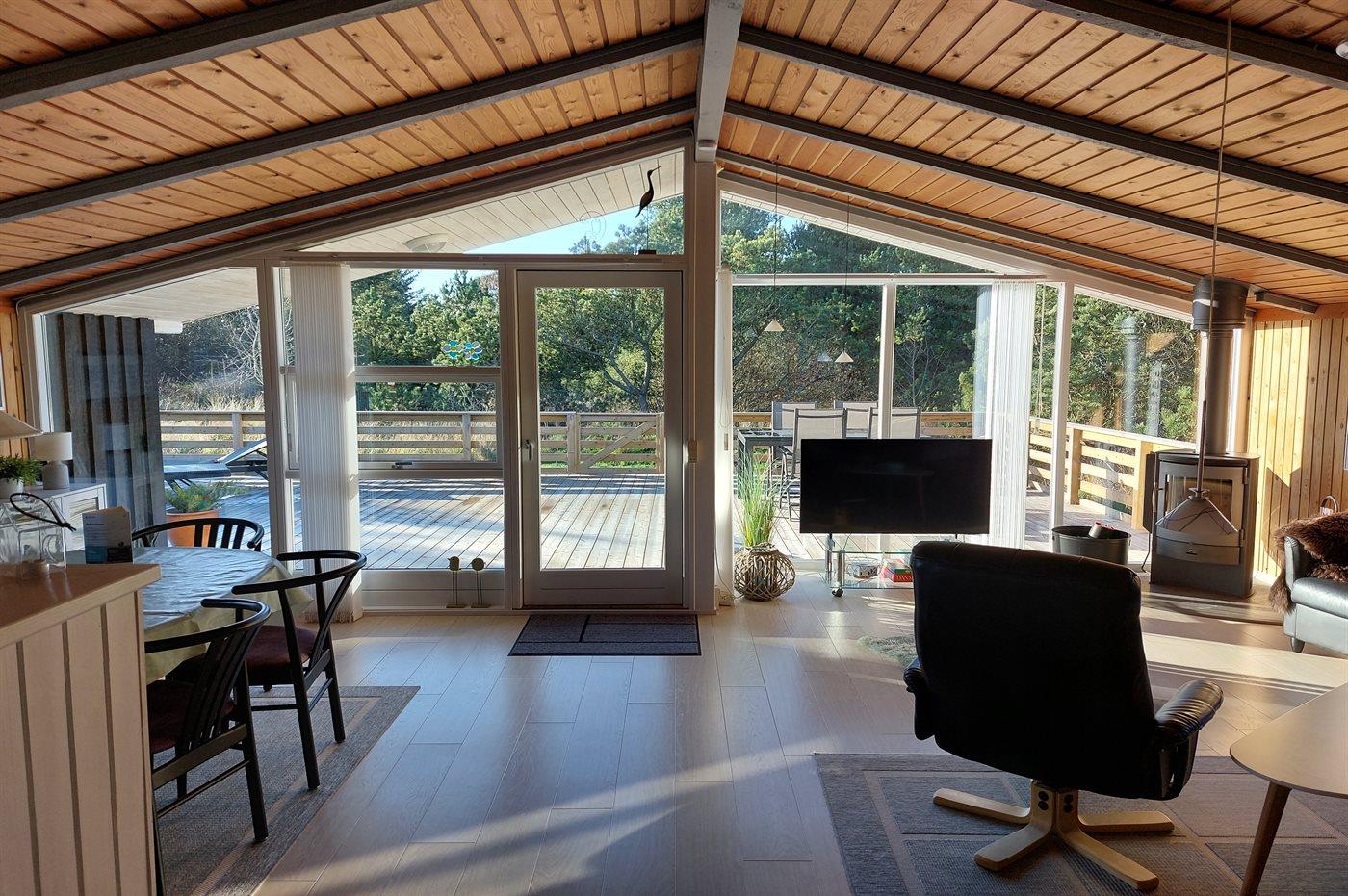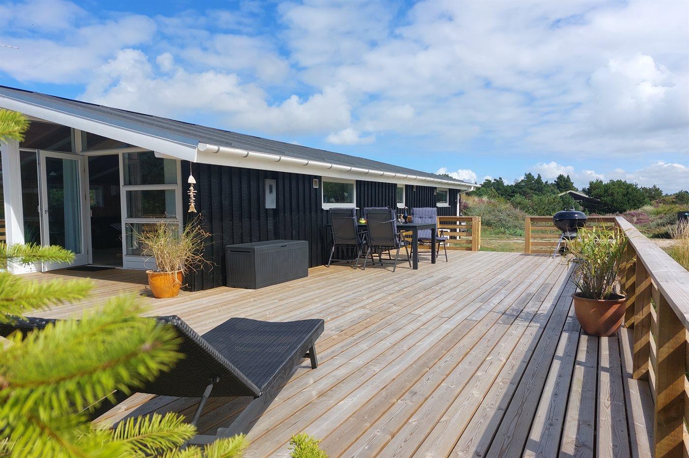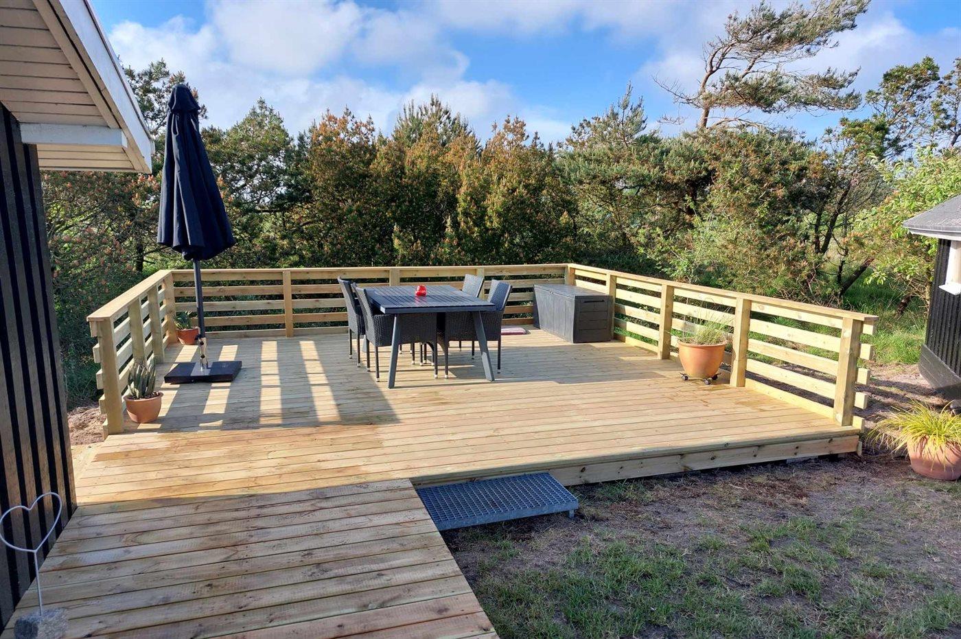 På en særdeles skøn naturgrund, på en rolig vej i Bolilmark ligger dette dejlige sommerhus Til huset hører en stor såvel åben som overdækket, vestvendt terrasse med havemøbler. Terrassen er godt afskærmet og perfekt til både solbadning og mange dejlige grillaftener. Huset er desuden blevet ombygget og har fået tilføjet en flot glasfacade som giver et helt unikt og afstemt indeklima. Et hus som danner de perfekte rammer for en god ferie midt i naturen og tæt ved en af Europas absolut bedste badestrande, hvortil der er direkte adgang fra den nærliggende cykel- og vandresti.