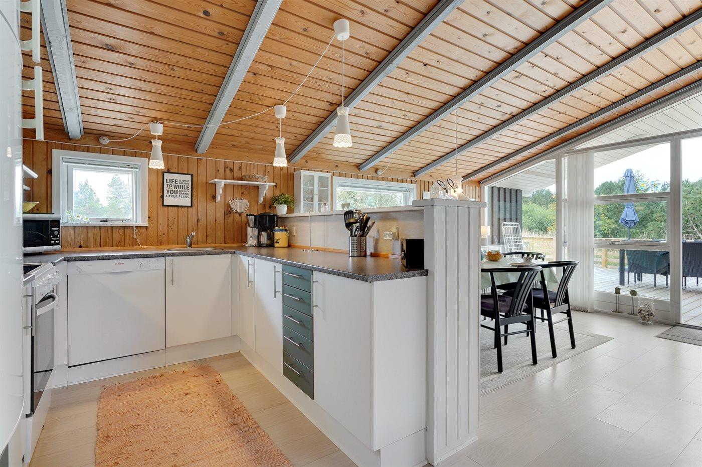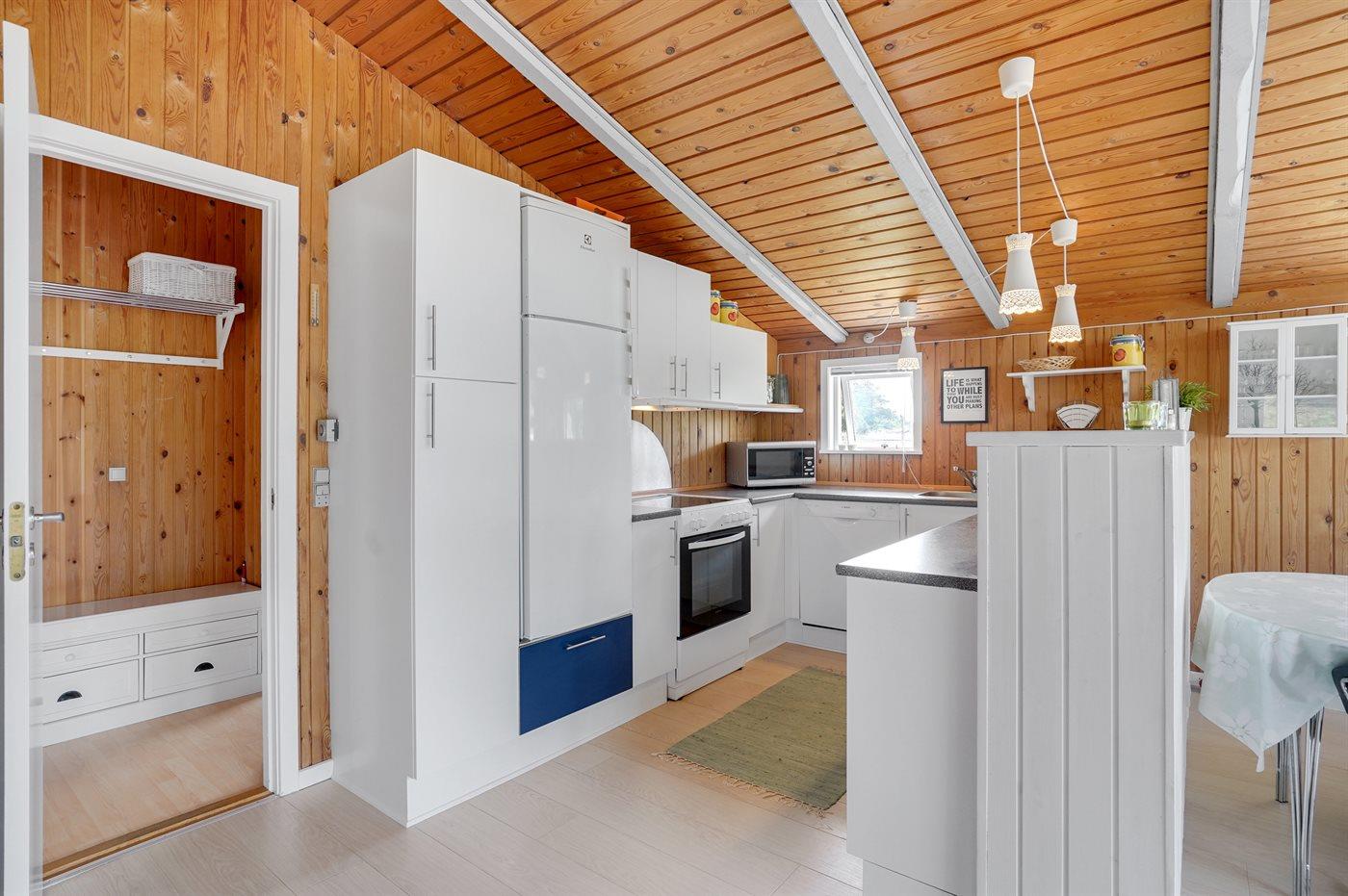 Køkkenet er udstyret med 1 køleskab. Der er 4 keramiske kogeplader, varmluftovn, mikrobølgeovn samt opvaskemaskine.