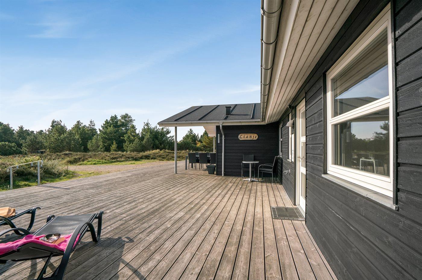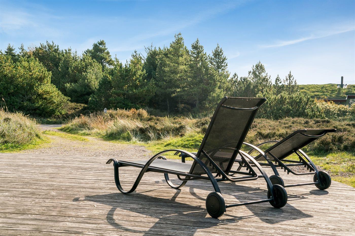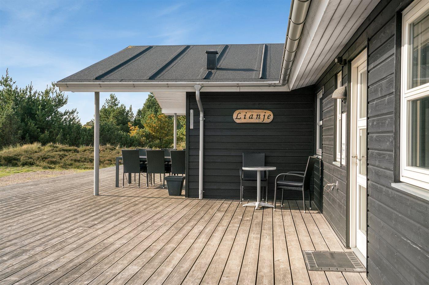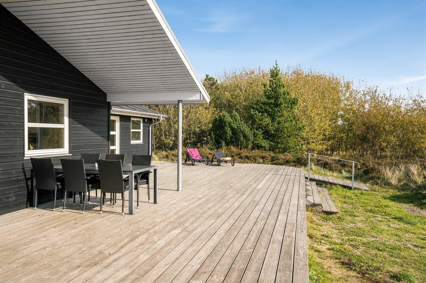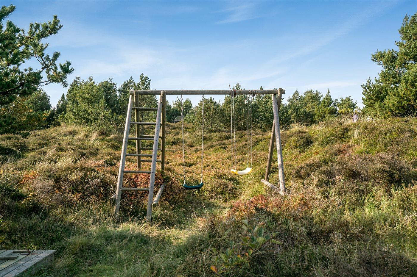 Ferieboligen er beliggende på en 2500 m² stor naturgrund. Der er 2300 m til havet. Nærmeste forretning er beliggende i en afstand af 4300 m. Til ferieboligen hører 86 m² terrasseareal. Desuden er der 34 m² overdækket terrasse. Der er redskabsrum. Gynge. Sandkasse. Parkering ved ferieboligen.