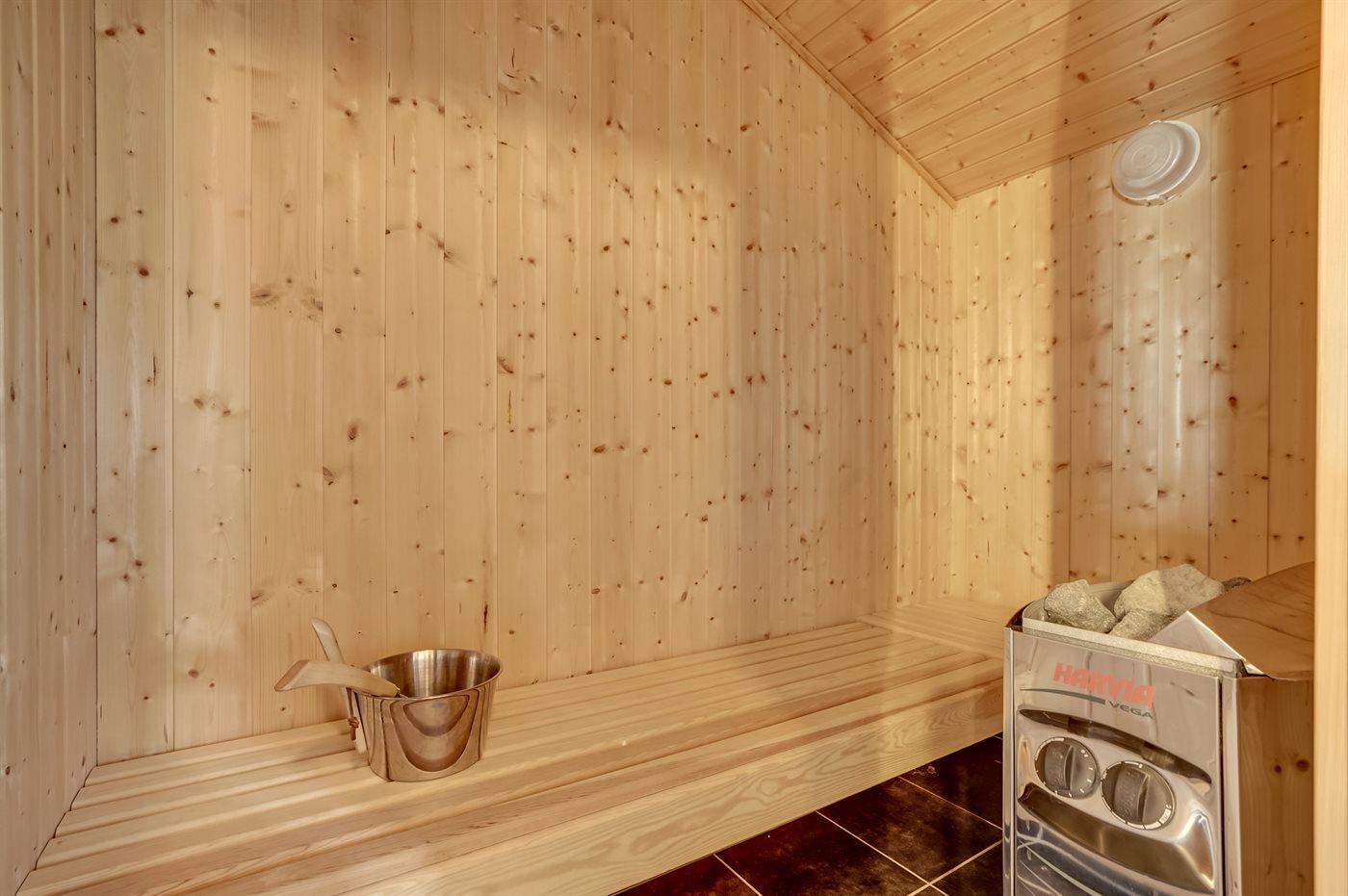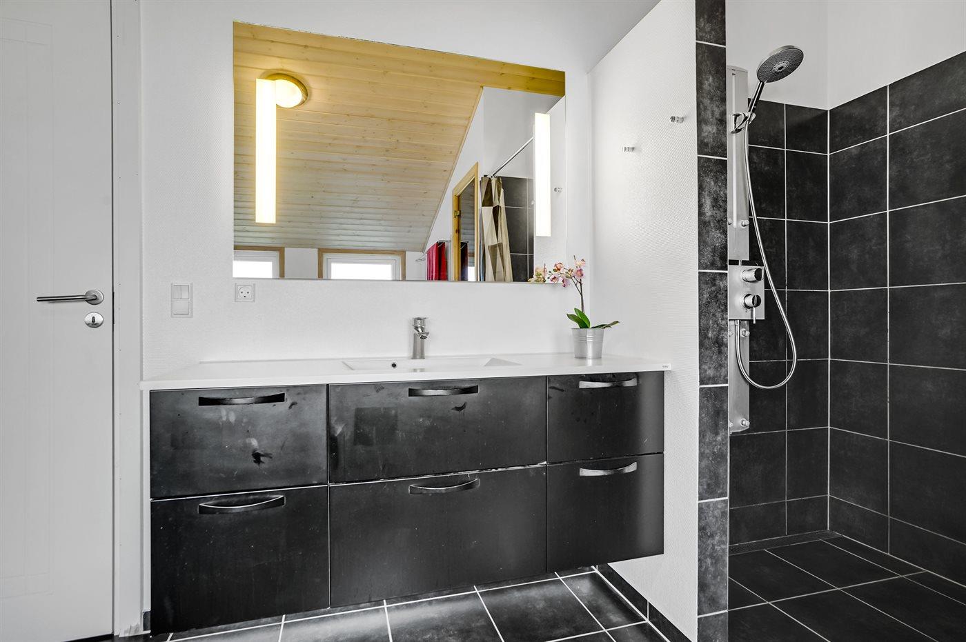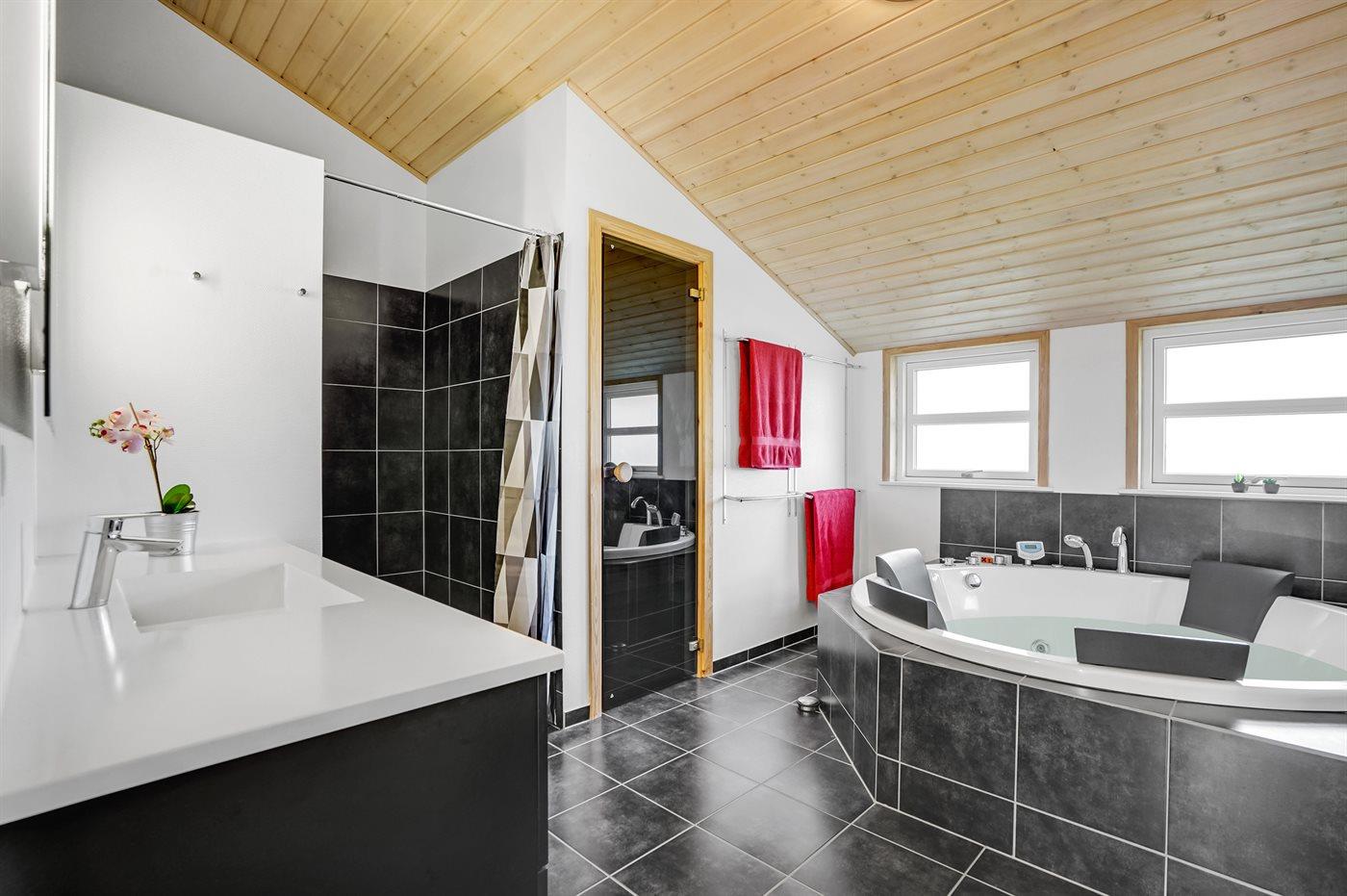 Der er 2 badeværelser med bruseniche og 2 toiletter. Der er gulvvarme på 2 badeværelser. I saunaen er der mulighed for afslapning.