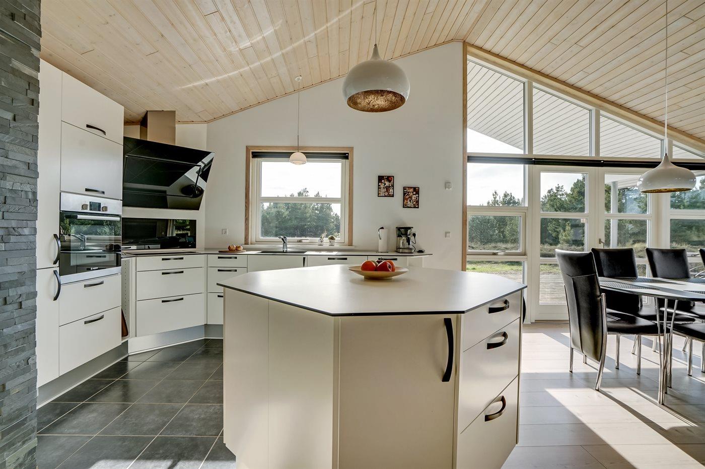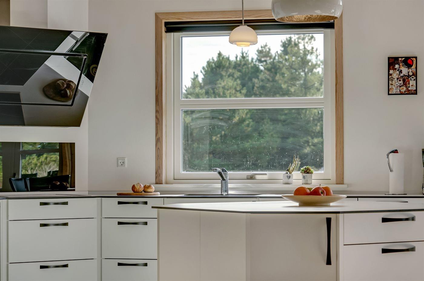 Køkkenet er udstyret med 1 køleskab. Der er 4 induktionskogeplader, varmluftovn, mikrobølgeovn samt opvaskemaskine Der er gulvvarme i køkkenet.