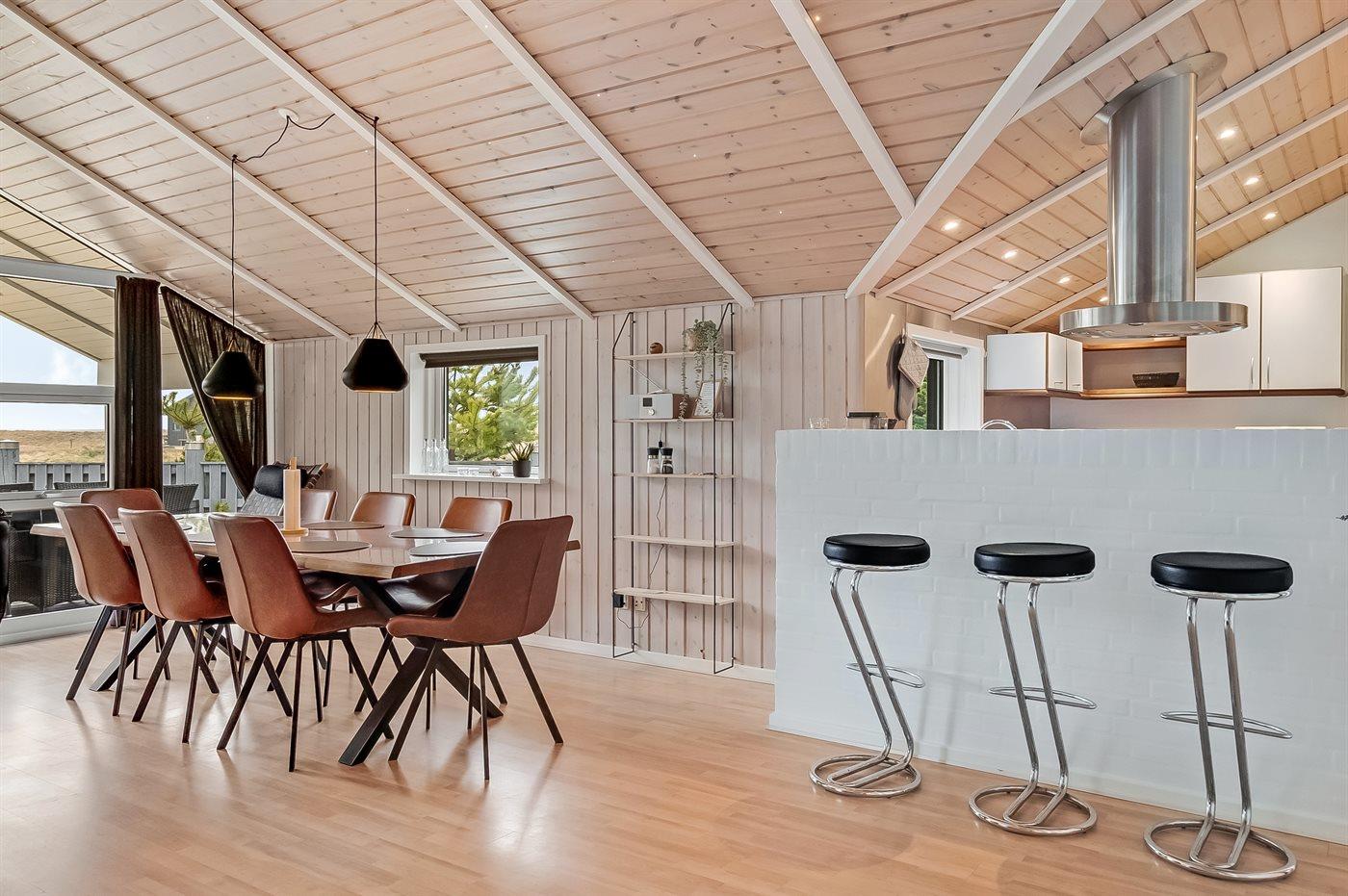 Dette luksussommerhus ligger på en stor naturgrund med frit udsyn/udsigt over Rømøs strandenge og med kig helt ud til stranden, hvor der kan ses opsatte drager m.m. Til huset hører en stor, delvist overdækket samt afskærmet, syd- og vestvendt terrasse med havemøbler. Indvendigt er huset smagfuldt indrettet og på grund af den gode opdeling af værelserne er huset velegnet til såvel 1 som 2 familier.