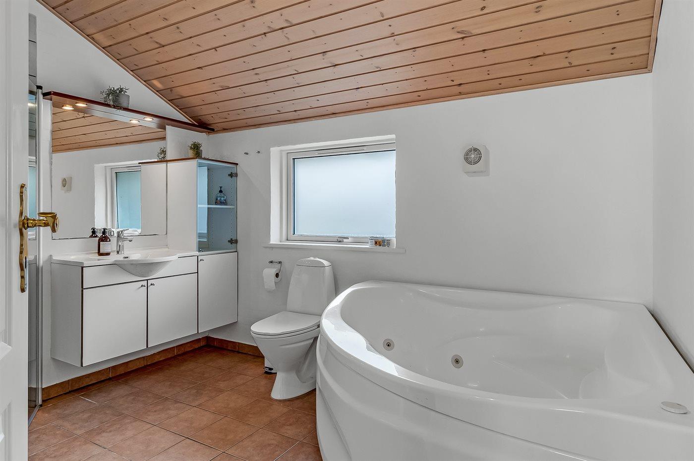 Der er 2 badeværelser med bruser og 2 toiletter. Der er gulvvarme på 2 badeværelser. I saunaen er der mulighed for afslapning.