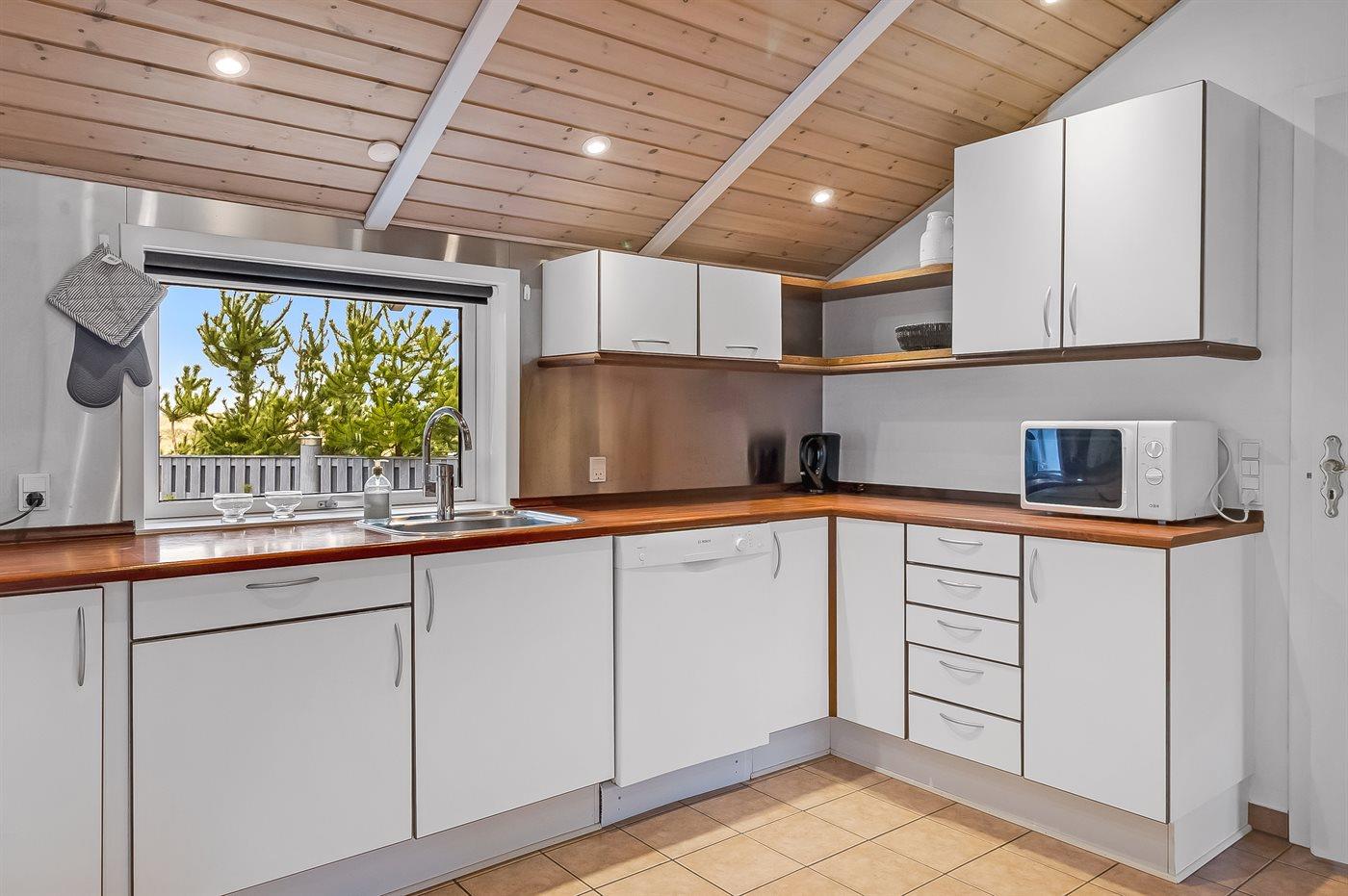 Køkkenet er udstyret med 1 køleskab. Der er 4 induktionskogeplader, varmluftovn, mikrobølgeovn samt opvaskemaskine.