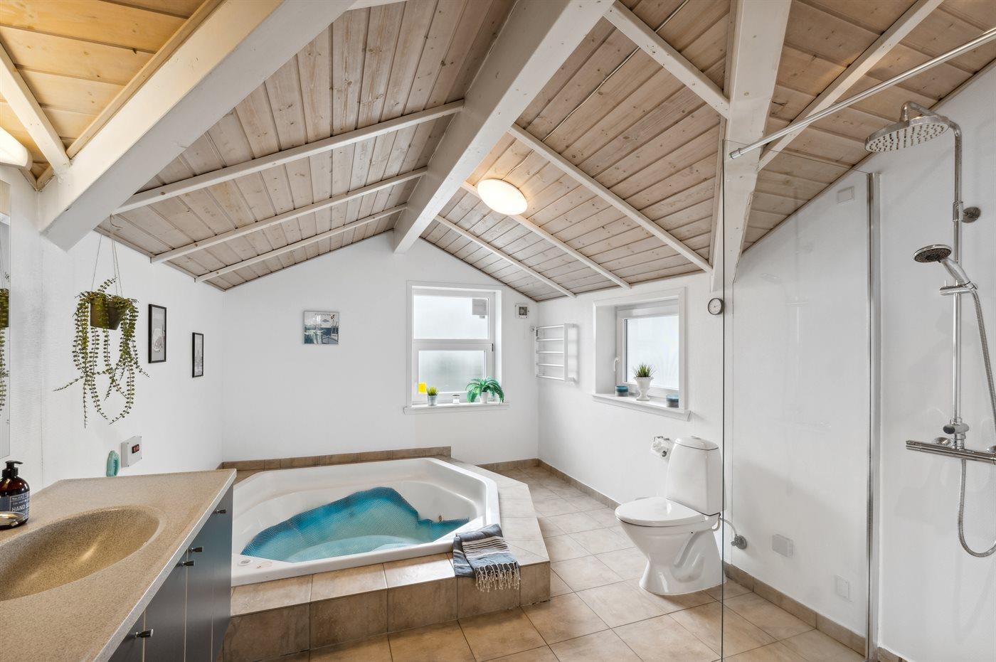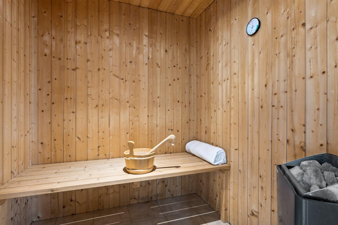 Der er 2 badeværelser med bruser og 2 toiletter. Der er gulvvarme på 2 badeværelser. I saunaen med dampterapi er der mulighed for afslapning.
