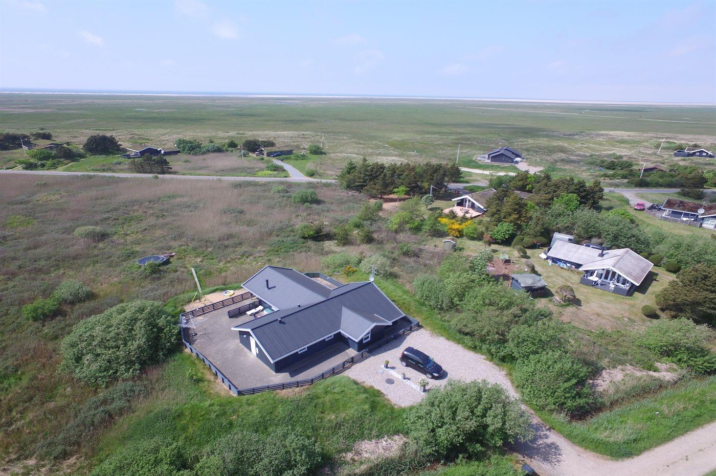Ferieboligen er beliggende på en 2500 m² stor naturgrund. Der er 1800 m til havet. Nærmeste forretning er beliggende i en afstand af 3500 m. Der er en golfbane i en afstand af 13000 m. Til ferieboligen hører 310 m² åbent og 30 m² overdækket terrasseareal - i alt 340 m² lukket terrasse. Gynge. Sandkasse. Parkering ved ferieboligen.