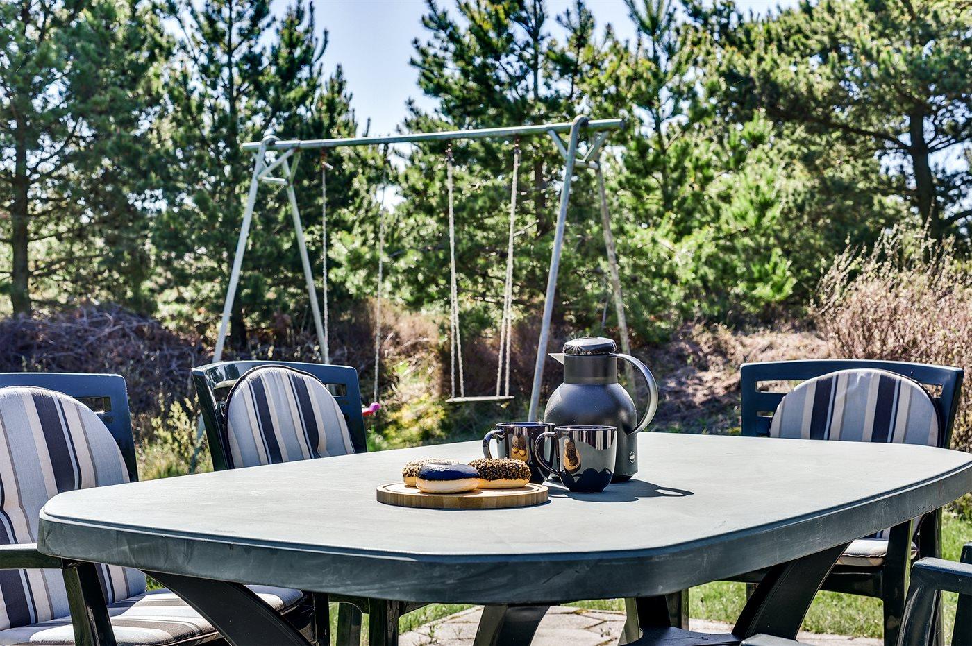 Ferieboligen er beliggende på en 3000 m² stor naturgrund. Der er 3100 m til havet. Nærmeste forretning er beliggende i en afstand af 3400 m. Til ferieboligen hører 30 m² terrasseareal. Sandkasse. Trampolin. Parkering ved ferieboligen.
