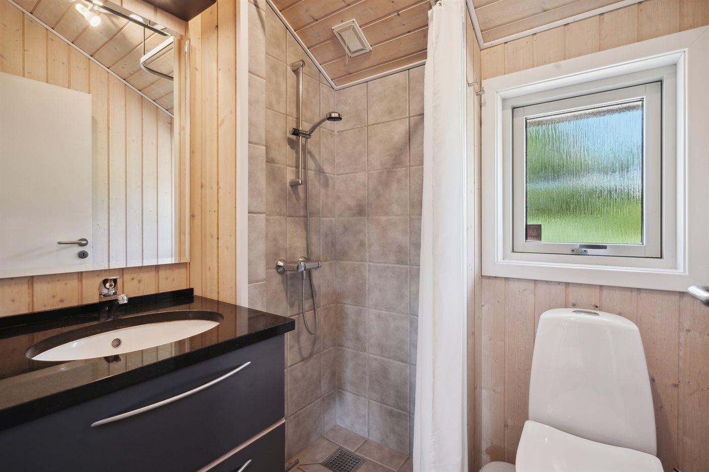 Der er 2 badeværelser med bruser og 2 toiletter. Der er gulvvarme på 2 badeværelser. I saunaen er der mulighed for afslapning. (Damp- og aromaterapi tilgængeligt).