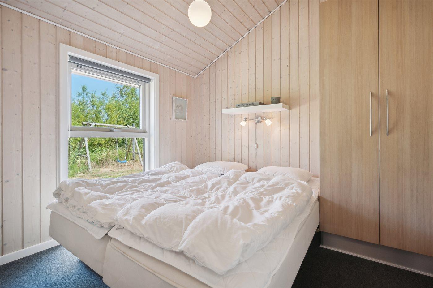 Der er i alt 3 soveværelser. Sovepladserne fordeler sig på: 4 sovepladser i dobbeltsenge. 2 sovepladser i enkeltsenge. 2 sovepladser i alkove. Derudover er der 1 stk. barneseng.