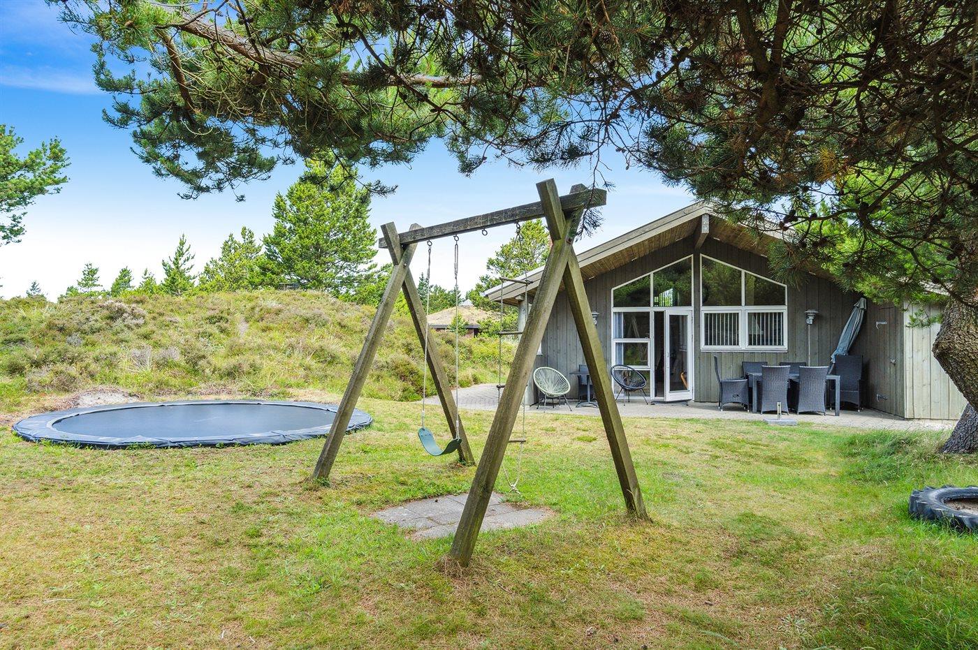 Ferieboligen er beliggende på en 2583 m² stor naturgrund. Der er 3100 m til havet. Nærmeste forretning er beliggende i en afstand af 4100 m. Til ferieboligen hører 50 m² terrasseareal. Desuden er der 10 m² overdækket terrasse. Der er redskabsrum. Gynge. Sandkasse. Parkering ved ferieboligen.