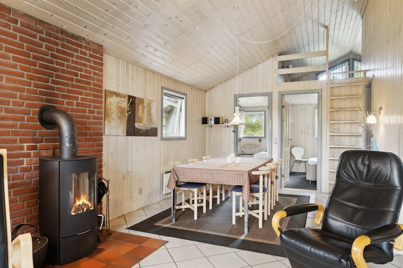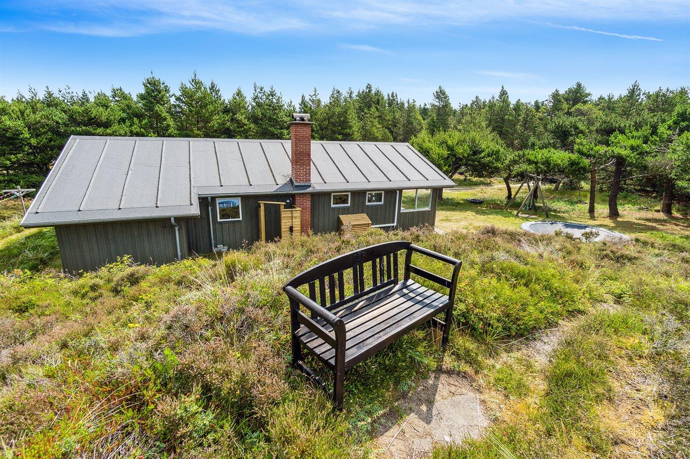 Dejligt sommerhus beliggende på en stor og kuperet grund, på en blind vej, i et naturskønt område. Huset er hyggeligt indrettet med adgang til hems, hvor 2 af sovepladserne befinder sig.