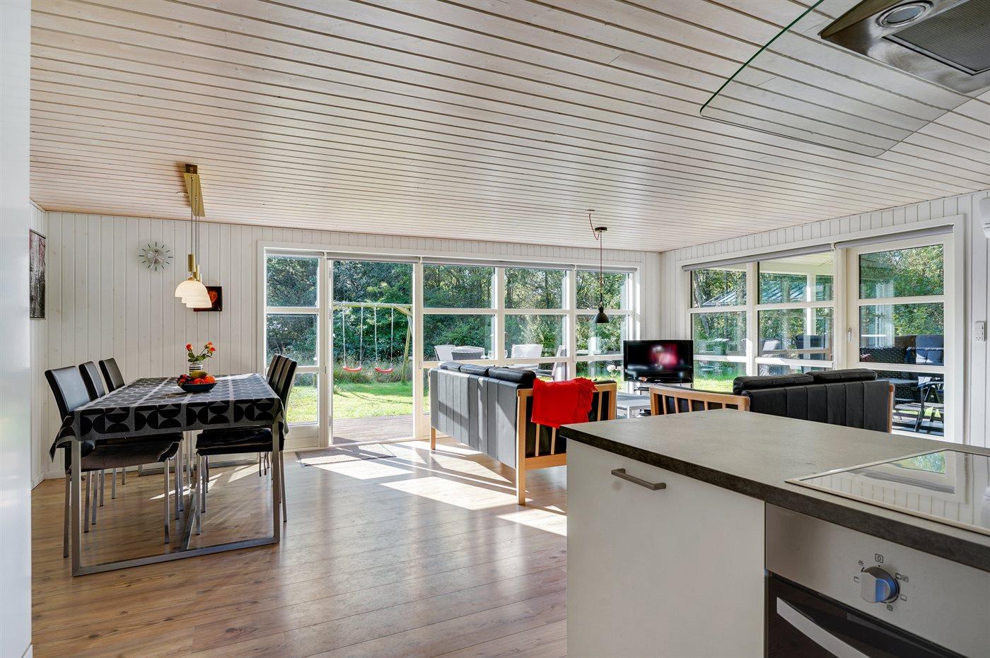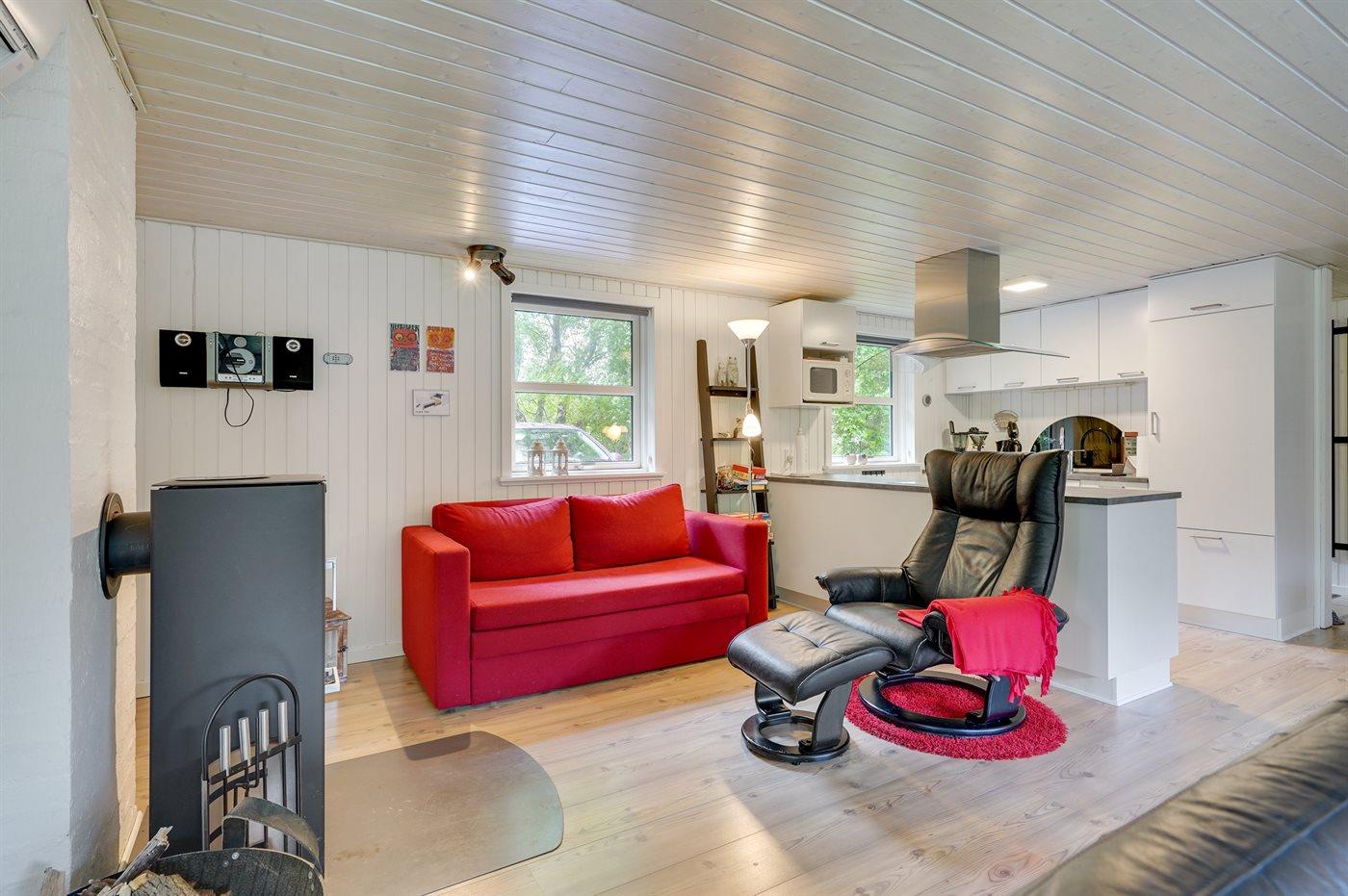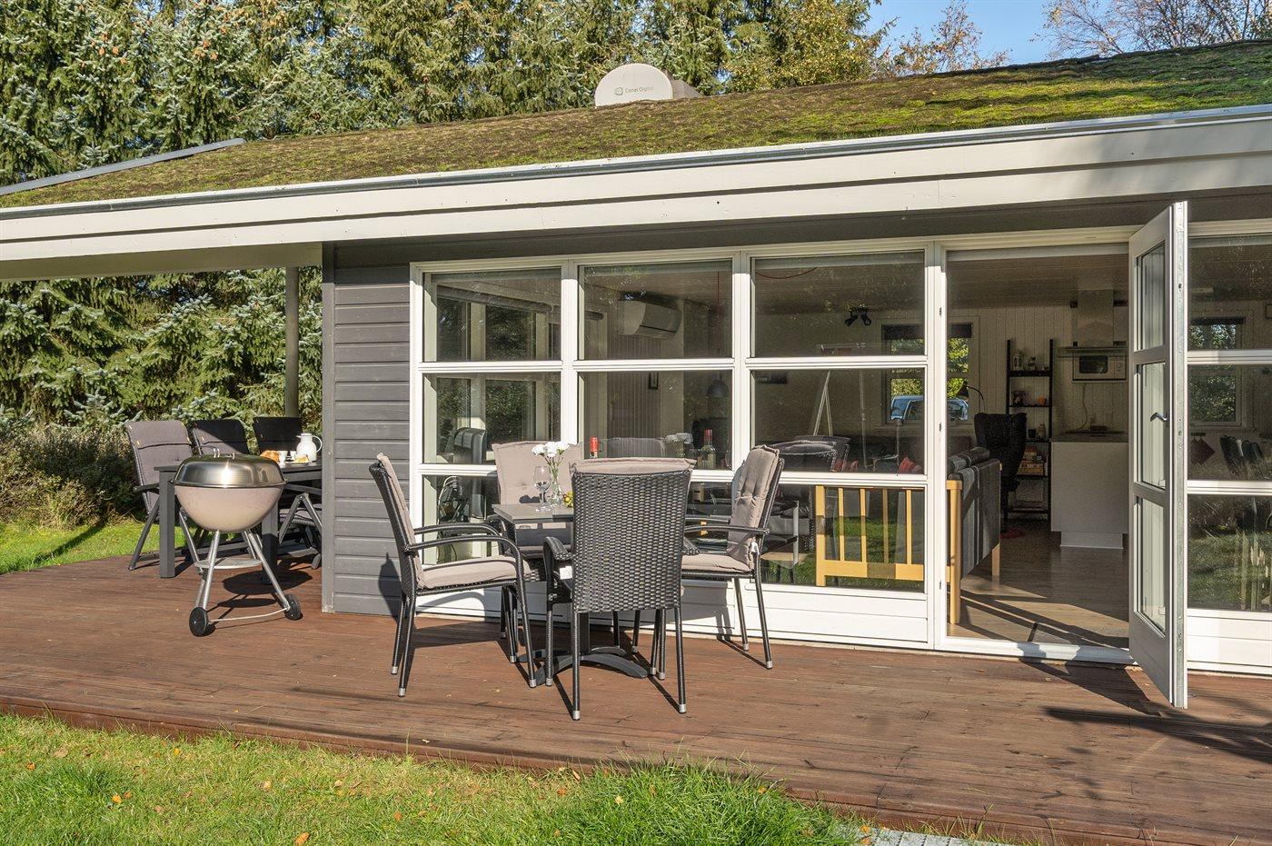 Dejligt og velholdt sommerhus i træ, bygget i 1978 og senest renoveret i 2017 med bl.a. nyt køkken, beliggende på en naturgrund med sandkasse og gynge i rolige omgivelser. Til huset hører såvel åben som overdækket terrasse med havemøbler. Badeværelse med gulvvarme, bruser, vaskemaskine og tørretumbler. Separat sauna. Køkkenet er bl.a. udstyret med opvaskemaskine, mikrobølgeovn, varmluftovn og køle-/fryseskab. I opholdsstuen finder I brændeovn, stereoanlæg med CD-afspiller, DVD-afspiller og TV med parabol (digital). Husets sovepladser fordeler sig på 2 værelser med dobbeltseng samt 2 sovepladser på dobbelt sovesofa i opholdsstuen. Desuden gratis, trådløs internetforbindelse (computer skal medbringes), fryser (står i annekset), høj barnestol og barneseng til rådighed. Der er installeret energibesparende varmepumpe. Et hyggeligt indrettet sommerhus til den lille familie.