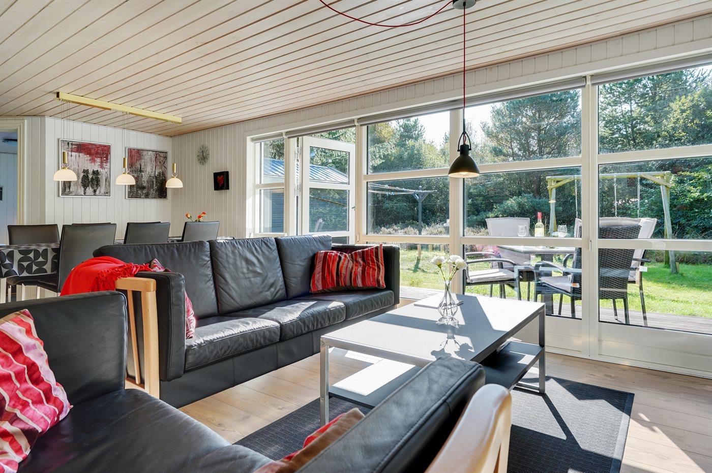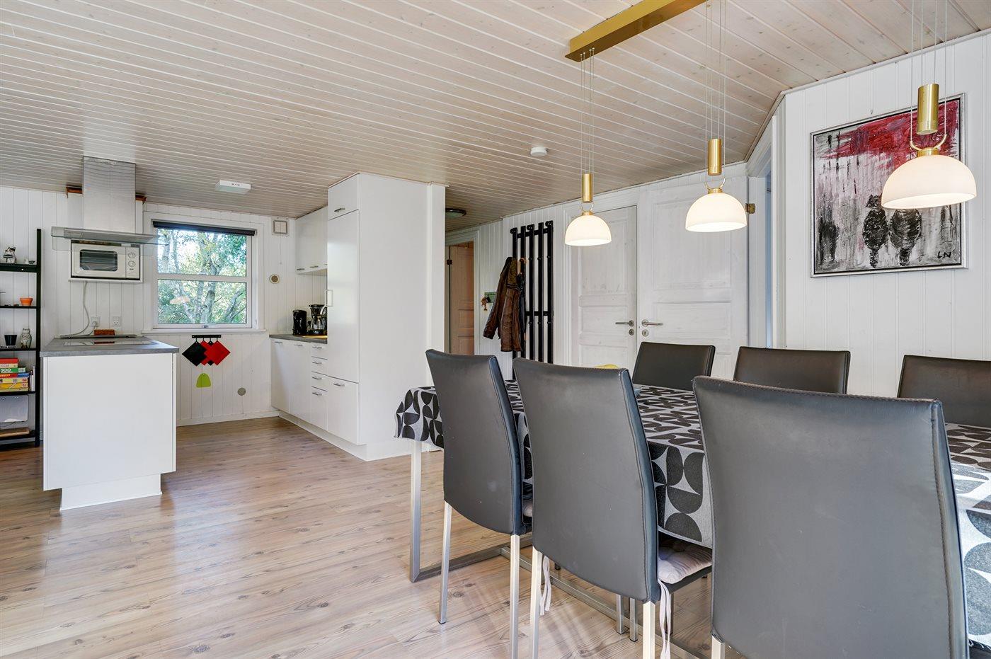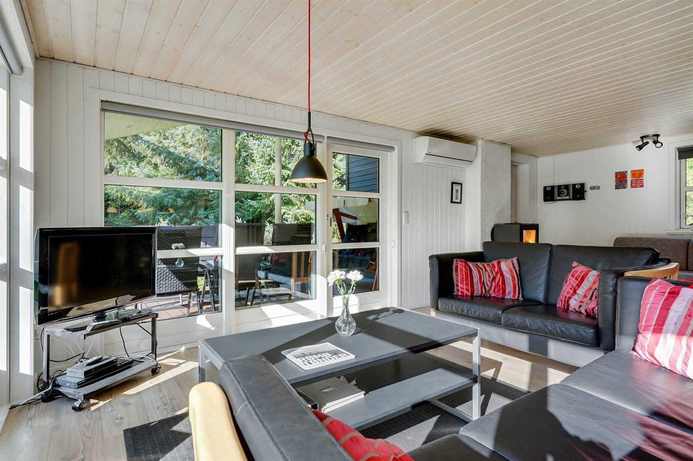 Dejligt og velholdt sommerhus i træ, bygget i 1978 og senest renoveret i 2017 med bl.a. nyt køkken, beliggende på en naturgrund med sandkasse og gynge i rolige omgivelser. Til huset hører såvel åben som overdækket terrasse med havemøbler. Badeværelse med gulvvarme, bruser, vaskemaskine og tørretumbler. Separat sauna. Køkkenet er bl.a. udstyret med opvaskemaskine, mikrobølgeovn, varmluftovn og køle-/fryseskab. I opholdsstuen finder I brændeovn, stereoanlæg med CD-afspiller, DVD-afspiller og TV med parabol (digital). Husets sovepladser fordeler sig på 2 værelser med dobbeltseng samt 2 sovepladser på dobbelt sovesofa i opholdsstuen. Desuden gratis, trådløs internetforbindelse (computer skal medbringes), fryser (står i annekset), høj barnestol og barneseng til rådighed. Der er installeret energibesparende varmepumpe. Et hyggeligt indrettet sommerhus til den lille familie.