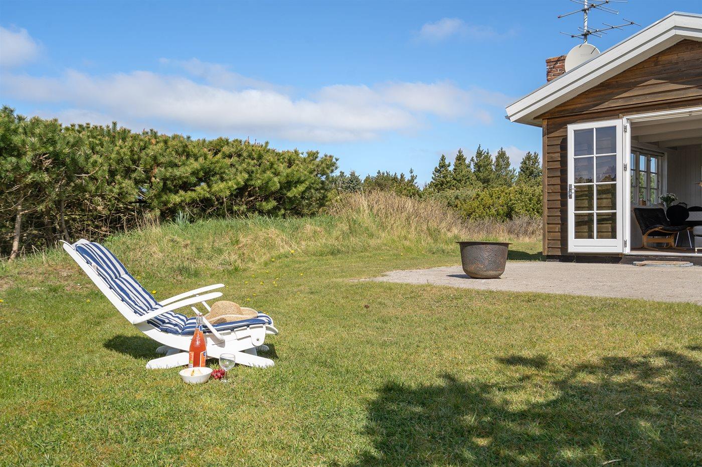 Ferieboligen er beliggende på en 2550 m² stor naturgrund. Der er 1900 m til havet. Nærmeste forretning er beliggende i en afstand af 1400 m. Til ferieboligen hører 100 m² terrasseareal. Desuden er der 3 m² overdækket terrasse. Terrassevarmer. Gynge. Sandkasse. Parkering ved ferieboligen.