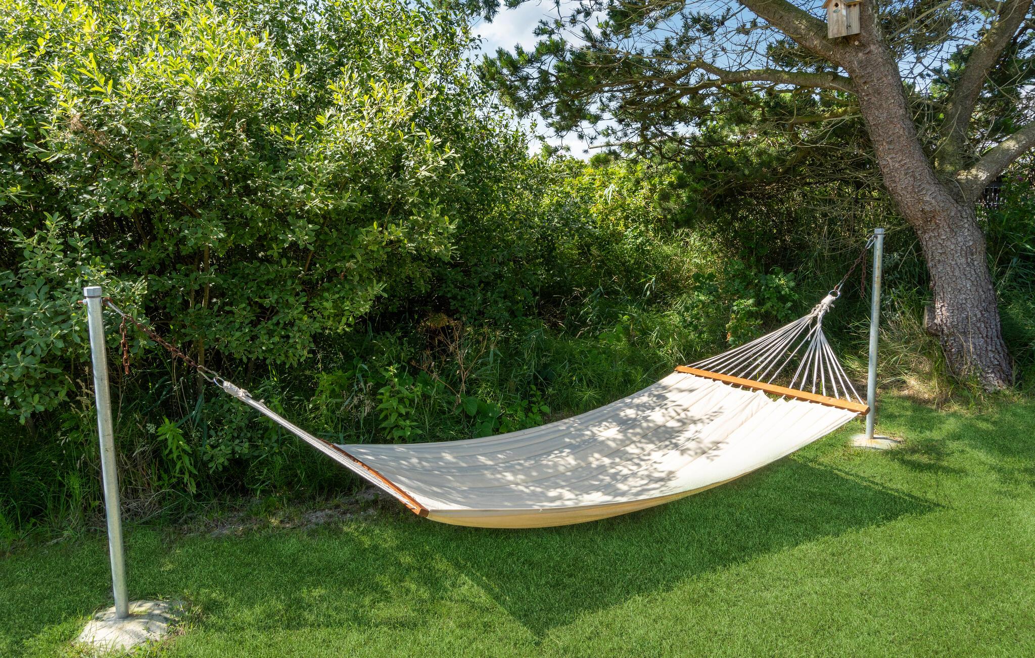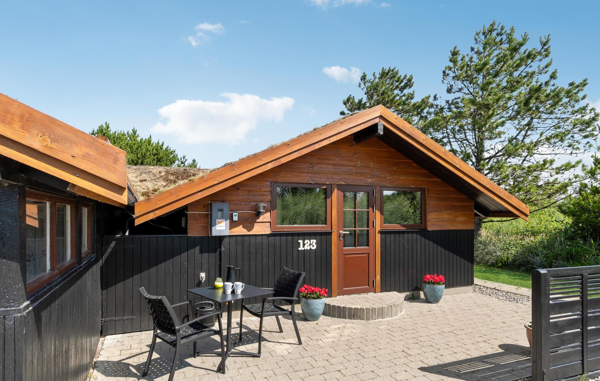 Hyggeligt sommerhus på stor naturgrund tæt ved Lakolk strand med gårdhave, grill og legefaciliteter.
