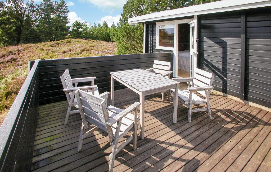 Charmerende træhus på Rømø med åben og overdækket terrasse, brændeovn og naturgrund på 2667 m2.