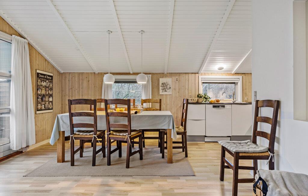 På en flot, kuperet naturgrund ligger dette rummelige træsommerhus. I huset er der en praktisk og veludstyret køkkenafdeling, der ligger i åben forbindelse med den lyse, kombinerede opholds-/spisestue. Stuen er udstyret med moderne møbler samt en hyggespredende brændeovn. Fra den hyggelige stue er der udgang til en skøn, ugenert vestvendt terrasse. Husene i Bolilmark har græstørv på taget, så de falder pænt i med områdets flotte natur - i gåafstand fra huset fører en cykelsti til Lakolk og Nordeuropas bredeste sandstrand.