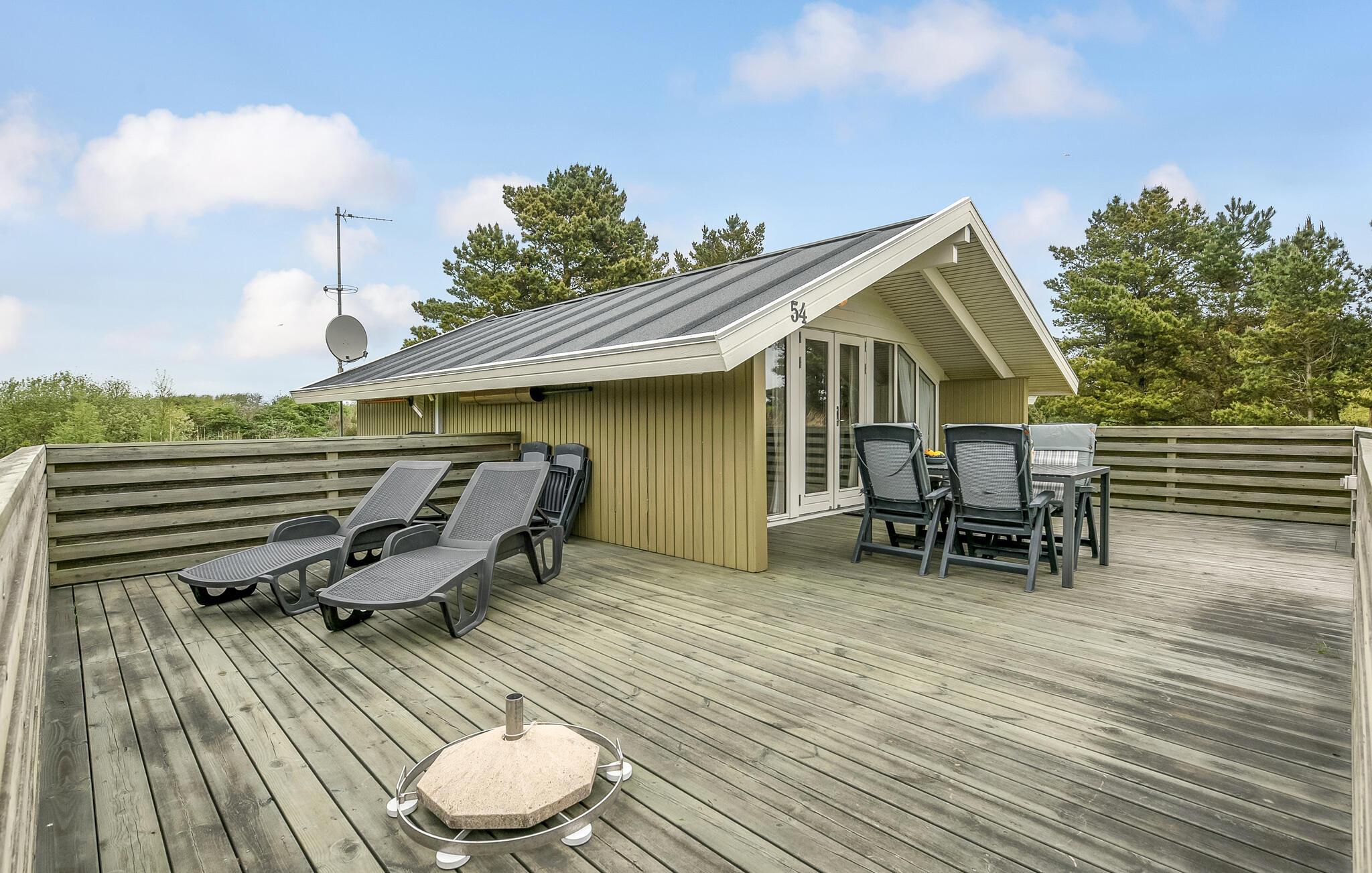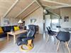 Dette dejlige luksushus ligger skønt på en klitgrund for enden af en lukket vej. På solskinsdage kan I nyde udendørslivet på terrassen, mens børnene leger på den store grund. Huset er meget velholdt og komfortabelt indrettet. Alle moderne faciliteter står til jeres rådighed, så de huslige pligter er let overstået. Efter en aktiv dag i Rømøs dejlige natur kan I slappe af i spabad og sauna, eller I kan hygge jer i stuen, hvor brændeovnen giver en behagelig varme på en kølig aften.