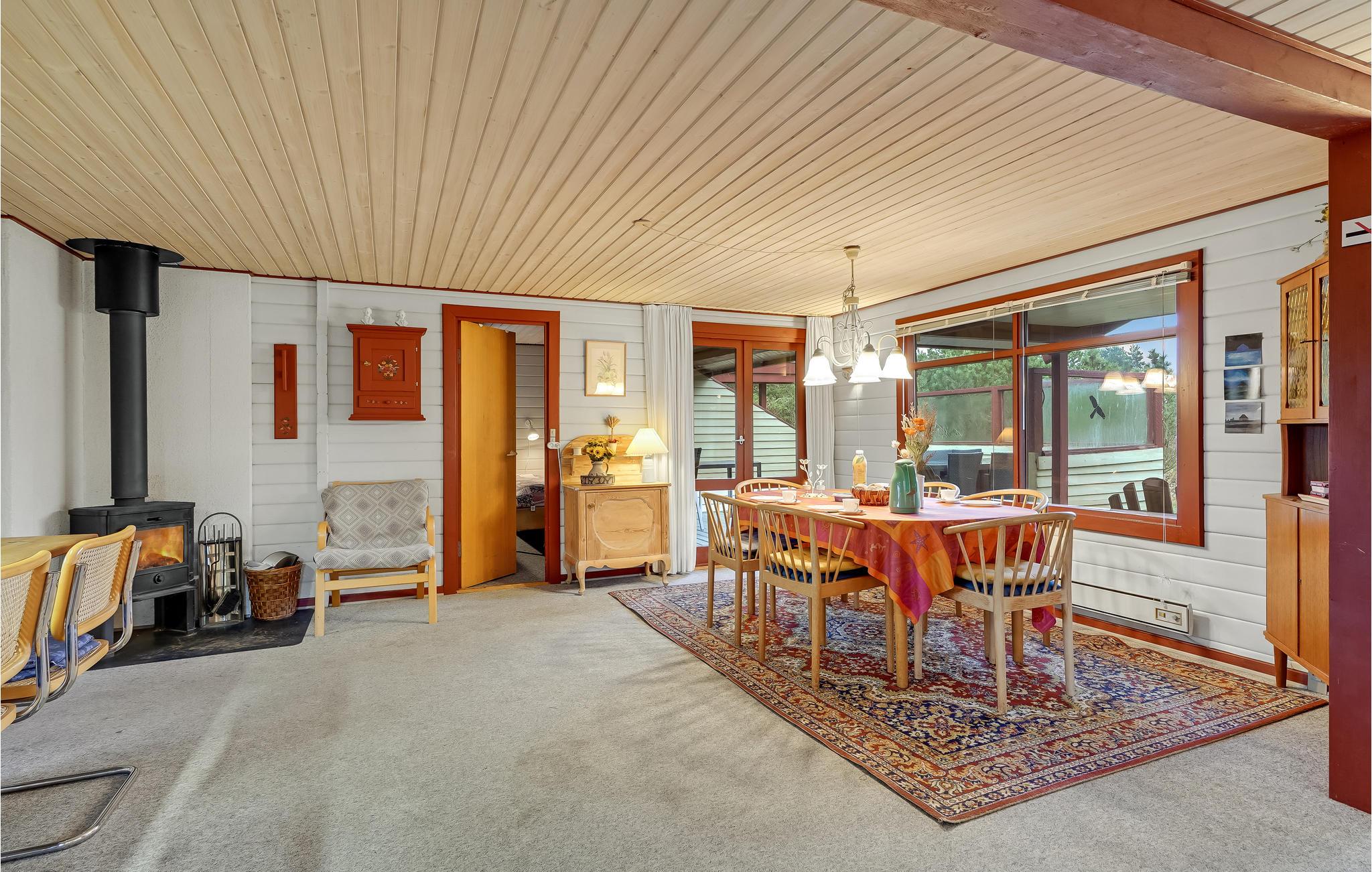 Velkommen til dette sommerhus, der ligger smuk placeret i den flotte natur. Huset er på ikke mindre end 160 m², og perfekt til flere generationer, da det nærmest er opdelt i 2 afdelinger med 2 opholdsstuer med hver sin brændeovn. Her er god plads til 8 personer, der kan fordele sig i de 3 soveværelser samt i den ene stue på en sovesofa. Endvidere findes der 2 badeværelser med gulvvarme. Udendørs på den store terrasse kan I holde hyggelige grillaftener og børnene kan lege gemmeleg på den store og let kuperede naturgrund. I har en flot udsigt over lyng- og hedearealer.