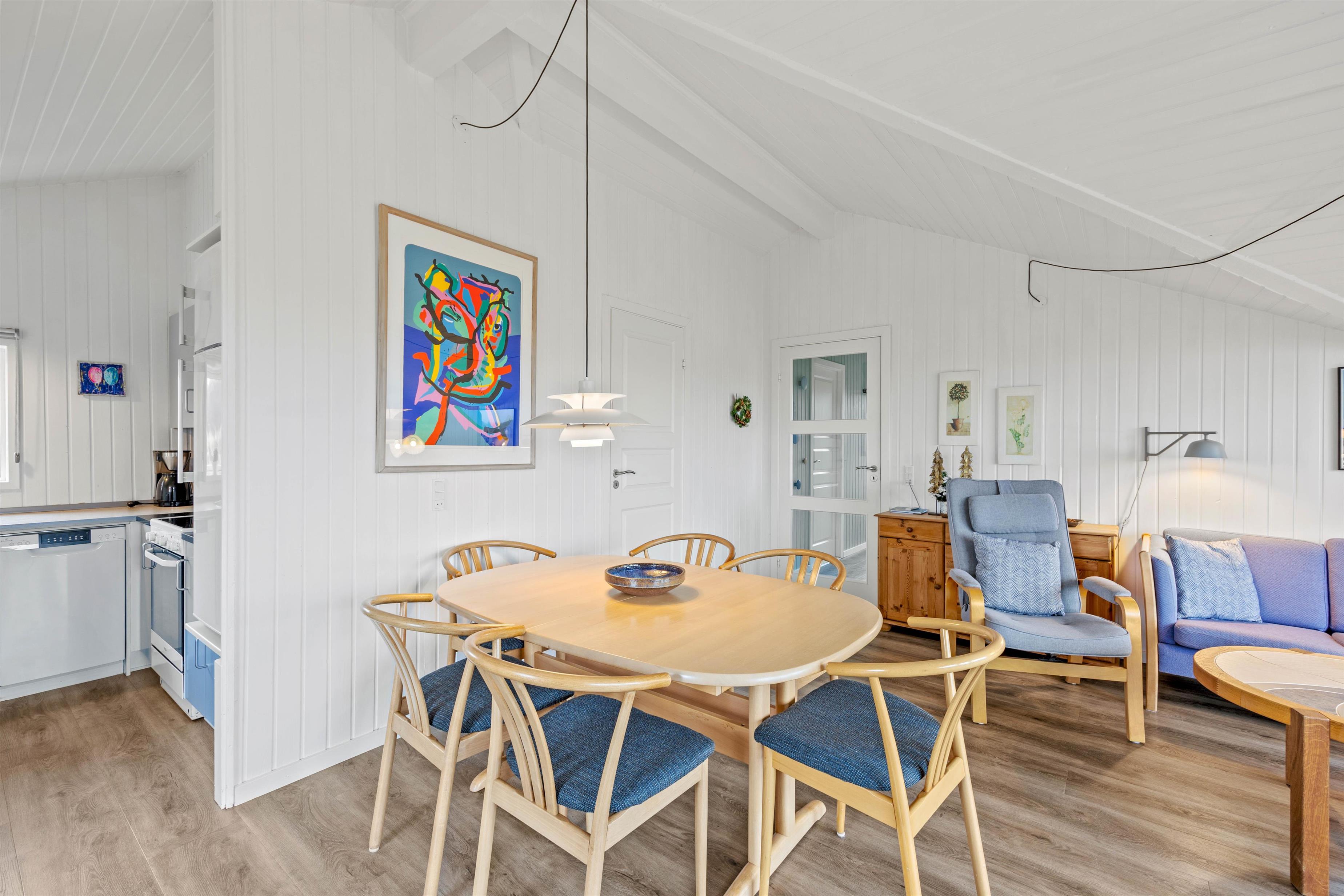 Til spisetid kan I samle jer ved spisebordet og nyde et lækkert måltid, som er tilberedt i den veludstyrede køkken. Her klarer opvaskemaskinen opvasken efter jer, så I i stedet kan nyde tiden med familien.