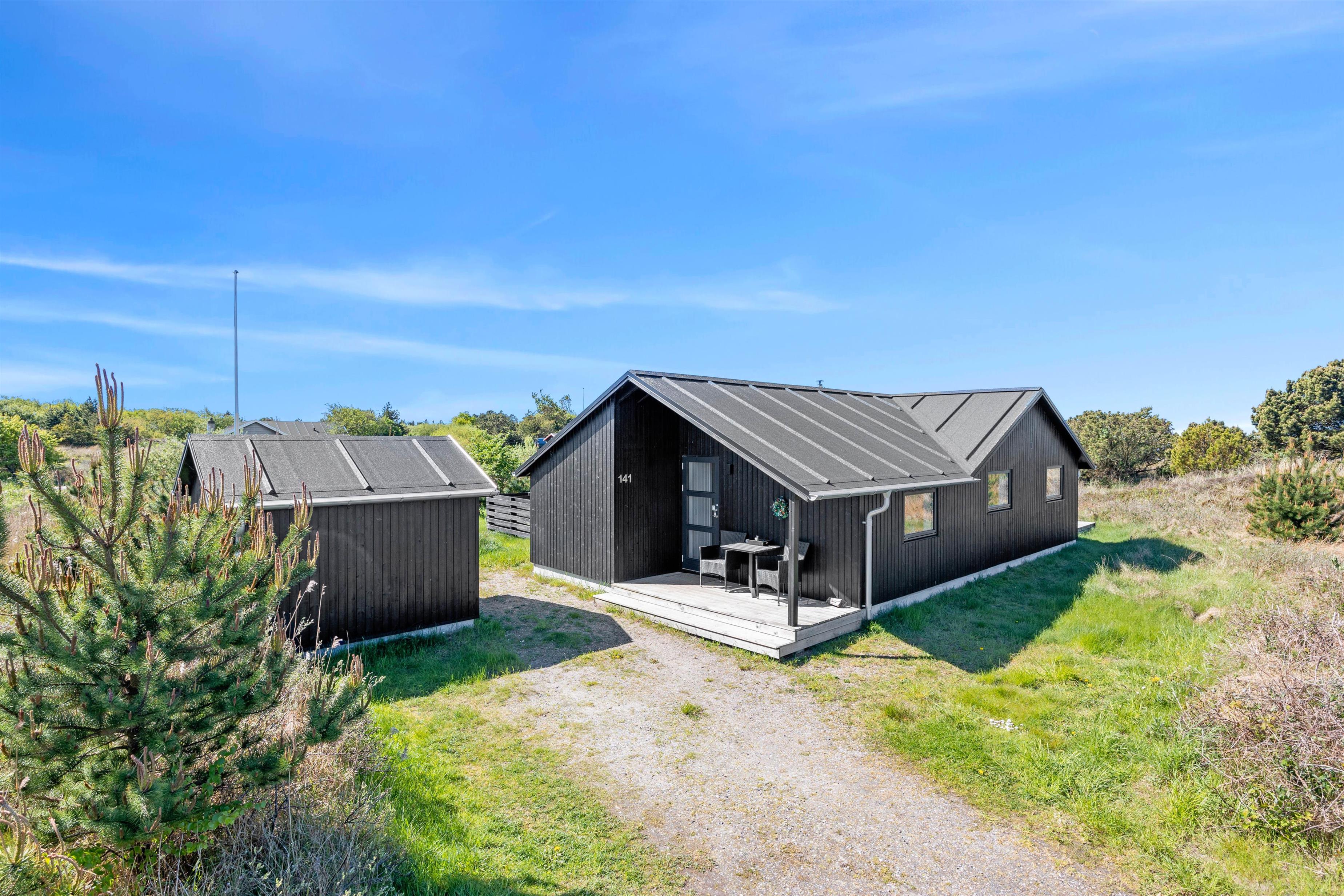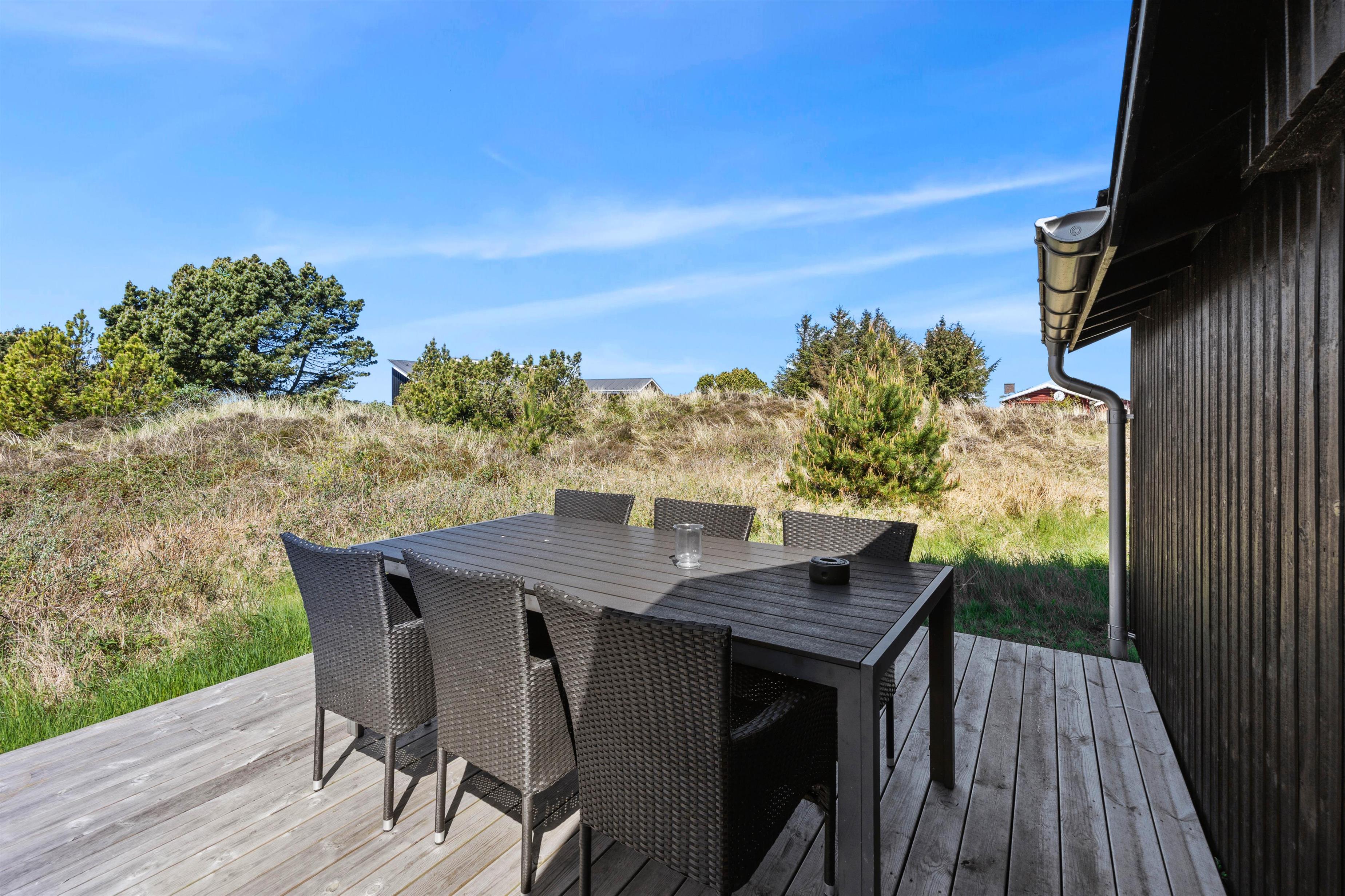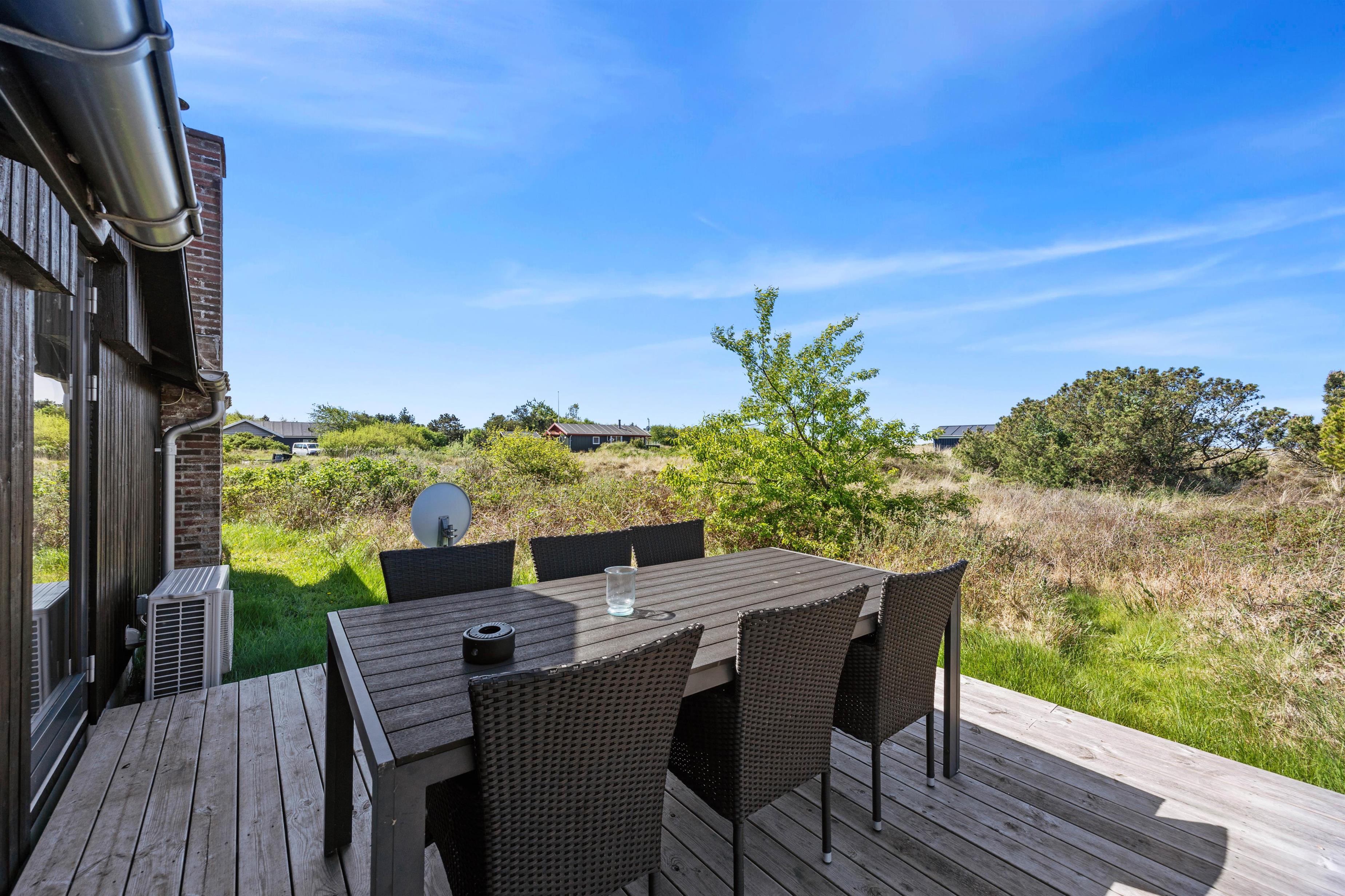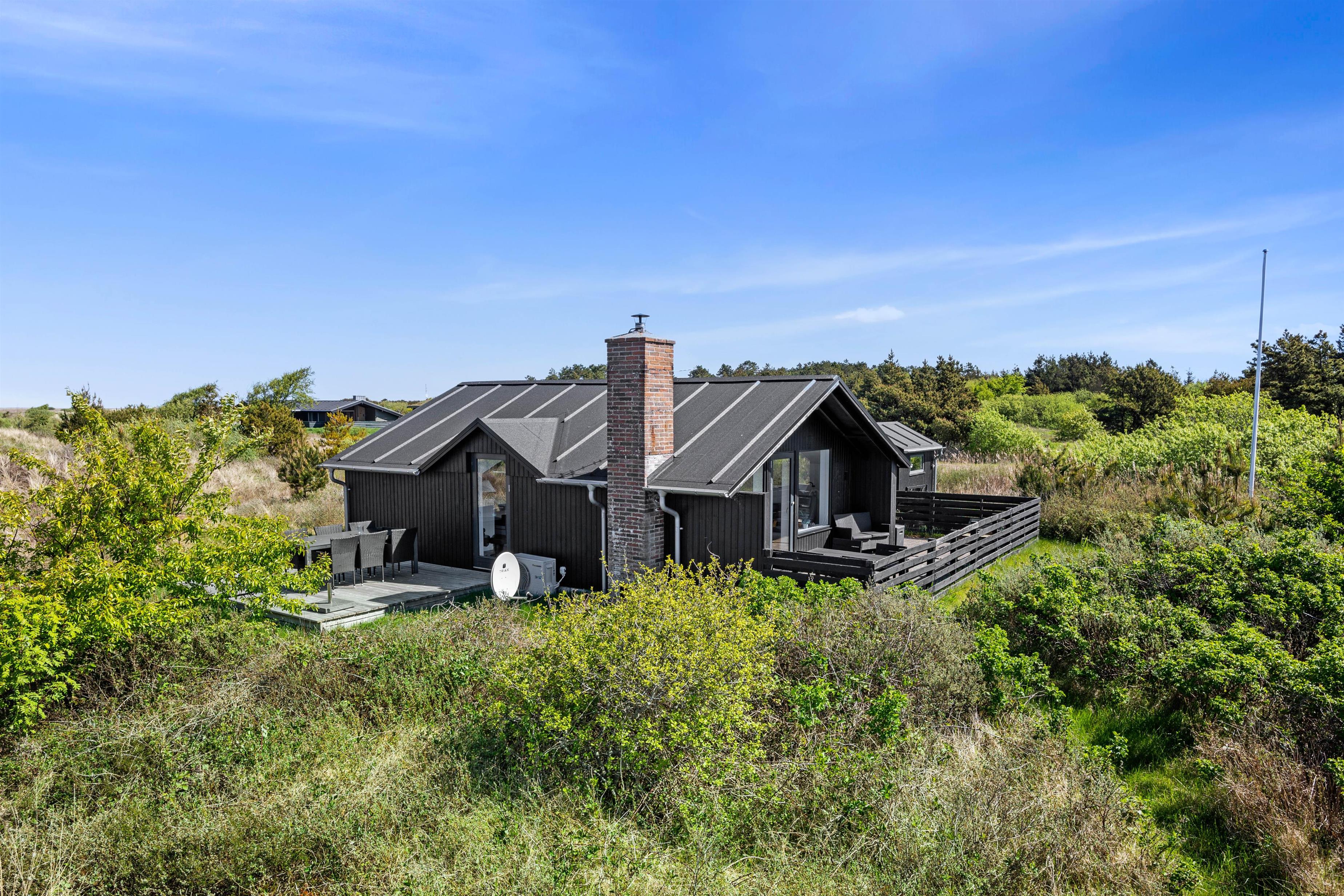 Omgivet af en kuperet, 2500 m2 stor naturgrund ligger dette feriehus midt i det betagende hedelandskab. På terrassen finder I behagelige havemøbler, hvorfra I kan observere naturen eller blot nyde solen. Dette sted indbyder til mange hyggelige stunder på en lun sommerdag.
